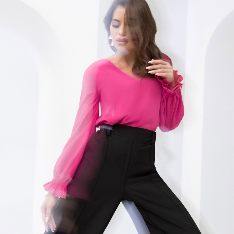 Романтичная блуза, которая требует спутников. Замок, кабриолет, прекрасного принца. А что ты думала, примеряя образ цвета яркой розы? Да, ты теперь в сказке, и окружение должно соответствовать. Магия!