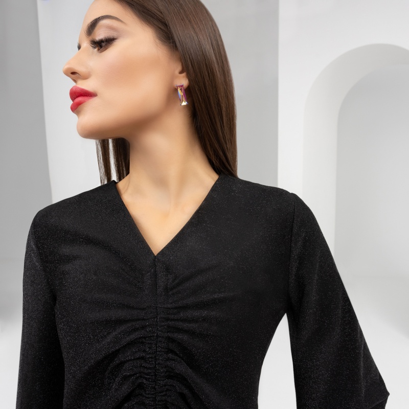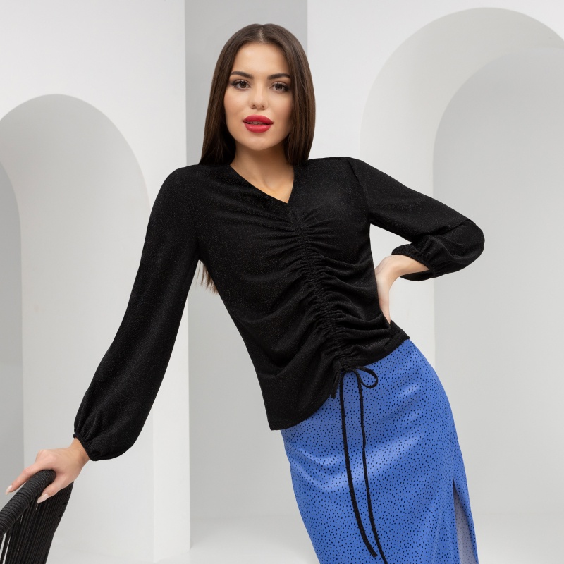 Ощутите магию звёздного неба, буквально облачаясь в него, с нашей блузой «Прогулка под звездопадом». Эта уникальная вещь, выполненная из трикотажа с люрексом, сияет и переливается, создавая эффект настоящего волшебства. Ваша кожа будет приятно ощущать нежность ткани, а глаза окружающих — ловить блеск, который не оставит никого равнодушным. Закажите эту блузу оптом, чтобы подарить вашим клиентам возможность выделяться на любом мероприятии. Вдохновите их на создание образов, где каждая деталь играет свою роль — от утончённого блеска люрекса до трендовых сборок, которые подчёркивают элегантность и чувство стиля.