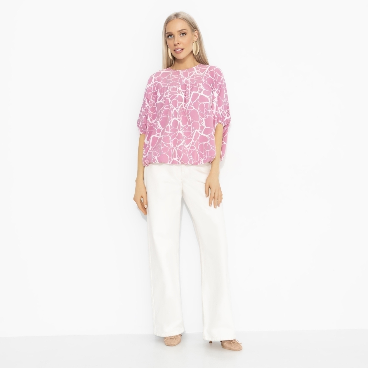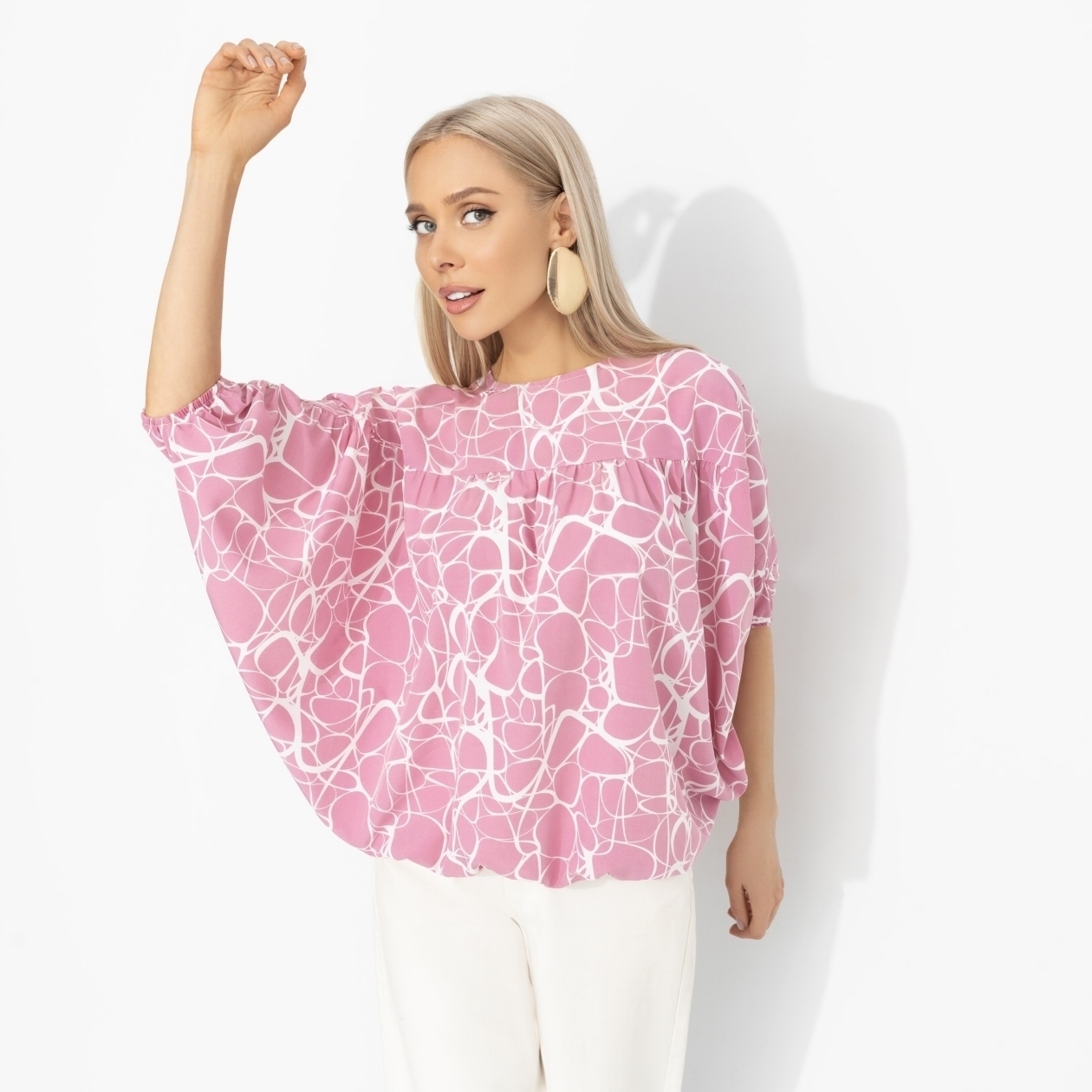 Всё начинается с мечты об отпуске. Сначала – картинки Лазурного берега, мечты о шуме волн и тёплом ветре с моря. А потом в гардеробе появляется блуза ЧАРУТТИ – лёгкая, воздушная, будто уже знает маршрут к солнцу. Блуза свободного силуэта из ткани «ниагара». Материал лёгкий, струящийся, красиво ложится по фигуре и приятен к телу. Ощущение отпуска появляется еще до покупки билетов.