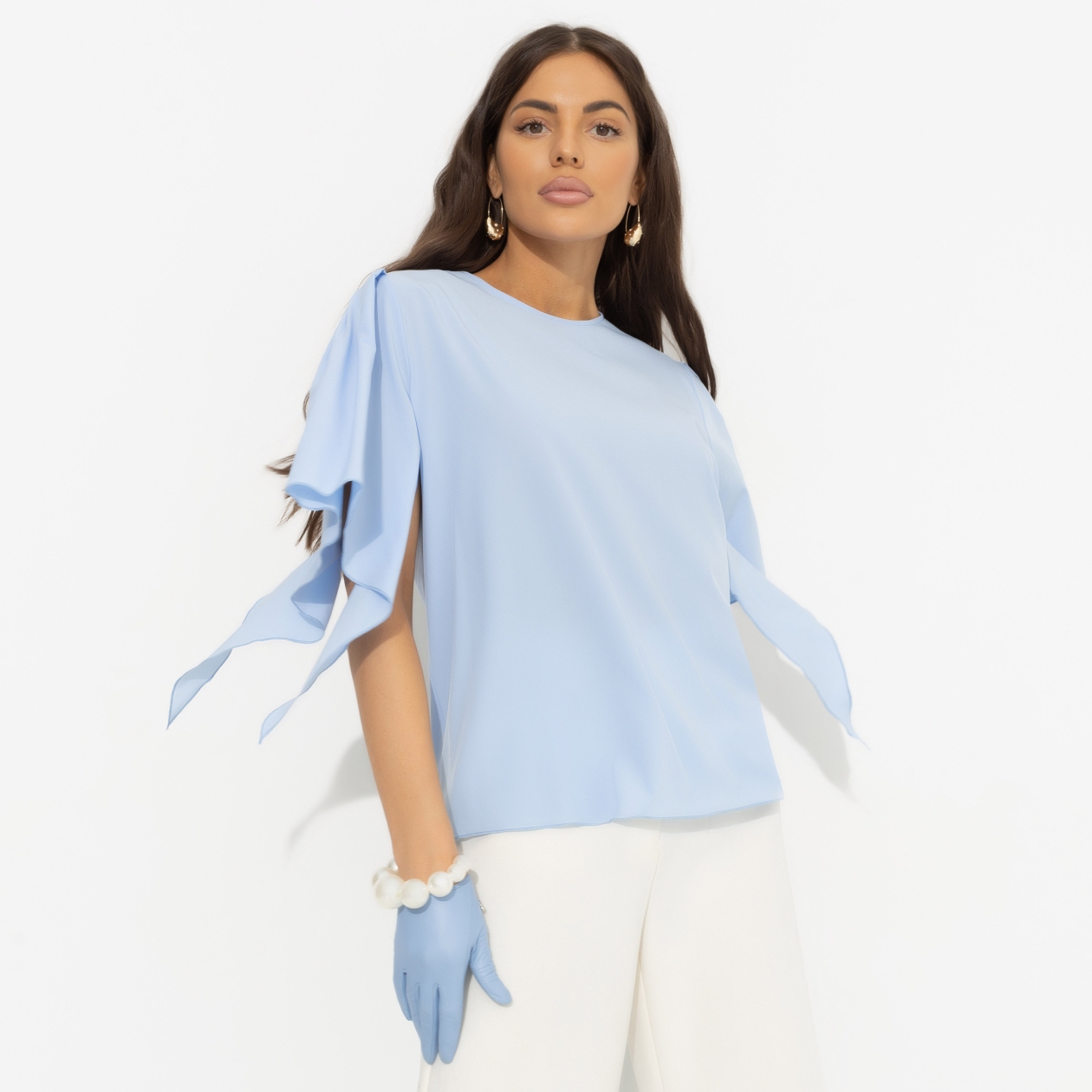 Нежная блуза с дизайнерскими рукавами «Значение моды (new)» – это не просто элемент гардероба, это произведение искусства, которое станет жемчужиной любой коллекции. Изготовленная из мягкой ткани «Софт», эта женская блуза летняя создана, чтобы дарить комфорт и стиль независимо от погоды. Свободный крой и небесно-голубой цвет делают ее универсальной для любого типа фигуры, позволяя каждой женщине чувствовать себя уверенно и привлекательно. Асимметричный крой рукавов и разрезы добавляют изюминку и делают эту блузу идеальной для вечерних прогулок или торжественных мероприятий. Если вы ищете блузу женскую с длинным рукавом, которая будет притягивать взгляды и вызывать восхищение, то это ваш выбор.