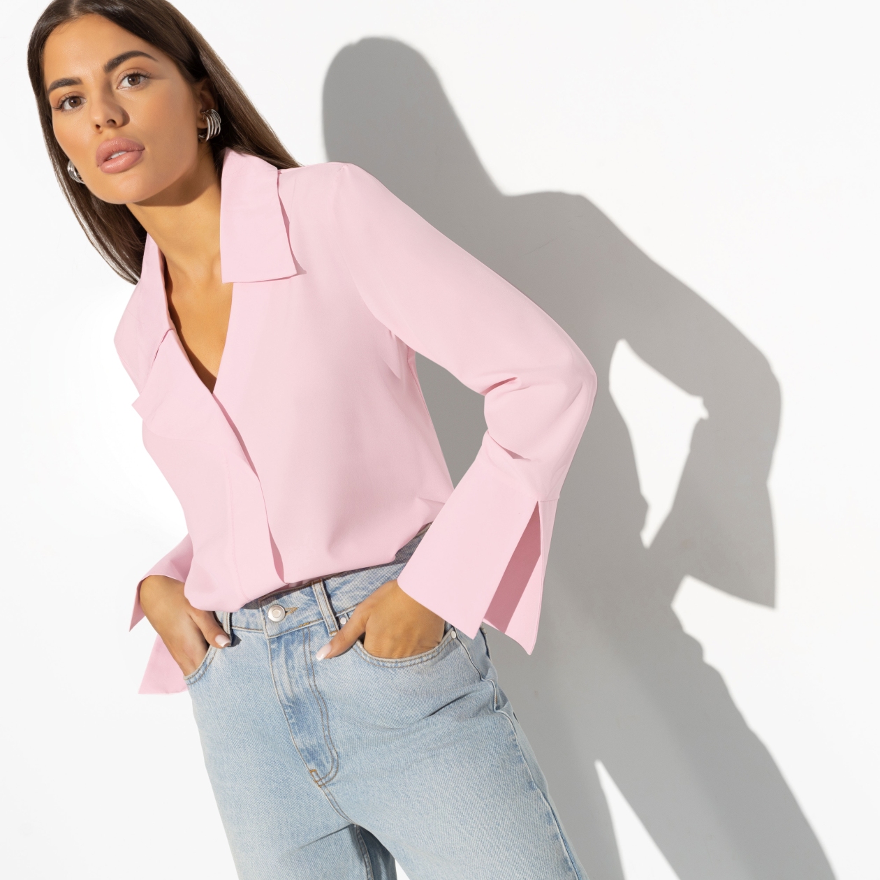 Из всего мирового ассортимента конфет он выбрал именно тебя – нежную, чуткую и притягательную. В пастельном розовом оттенке ты выглядишь особенно соблазнительно. Блуза в классическом стиле. Есть разрезы на рукавах. Хорошо смотрится в заправленном виде и навыпуск.