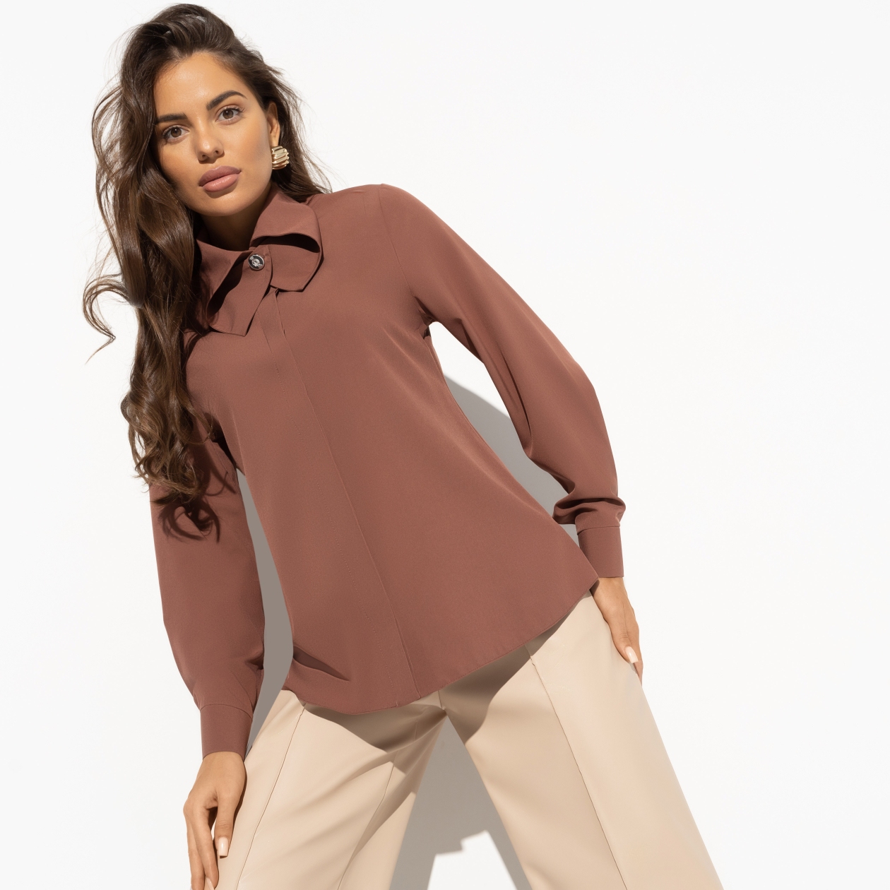 Путь к радостной жизни строится по принципу домино. Толкнув правильно первую кость, остальное сложится идеально автоматически. Просто выбирайте утром блузу CHARUTTI и дальше всё пойдет как по шоколадному маслу. Блуза прямого силуэта. Акцентная линия ворота. Линия пуговиц скрыта. Яркая контрастная фурнитура на рукавах и на вороте. Изделие хорошо смотрится в заправленном виде и навыпуск.