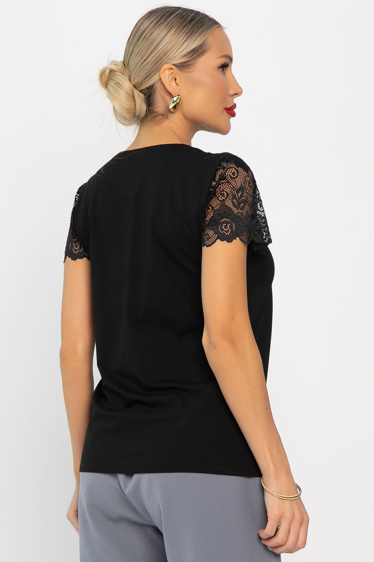 Блуза с кружевом Инь-Янь (черная) Б14257-18М