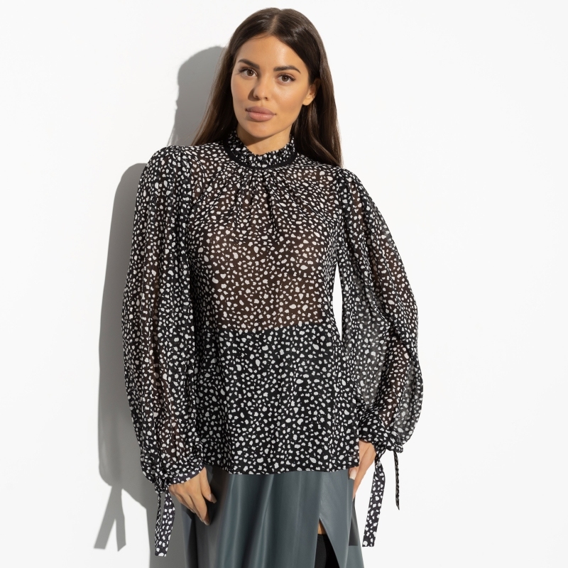 Наконец-то можно смело возразить маме, что прозрачная блуза – не твоя прихоть, а горячий модный тренд. Ты девушка молодая и амбициозная, так уж и быть, должна соответствовать. Тем более, что крой блузы максимально пуританский. Шик! Блуза свободного кроя. Объемный крой рукава. Блуза оформлена завязками на рукавах и на вороте сзади. Хорошо смотрится в заправленном виде и навыпуск.