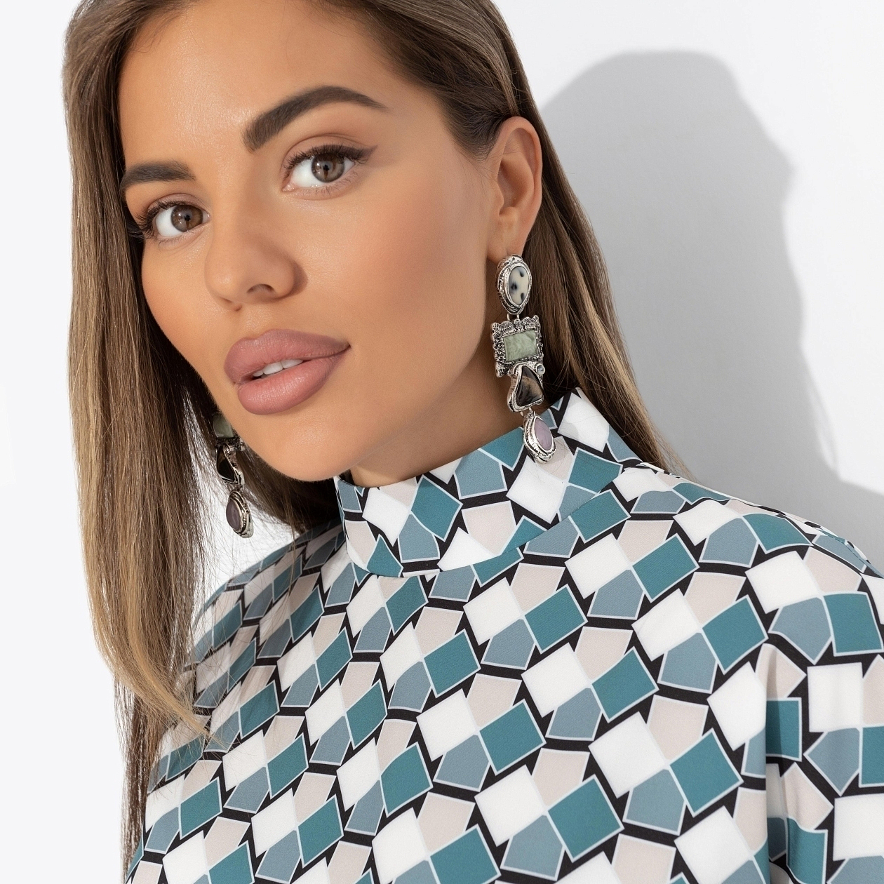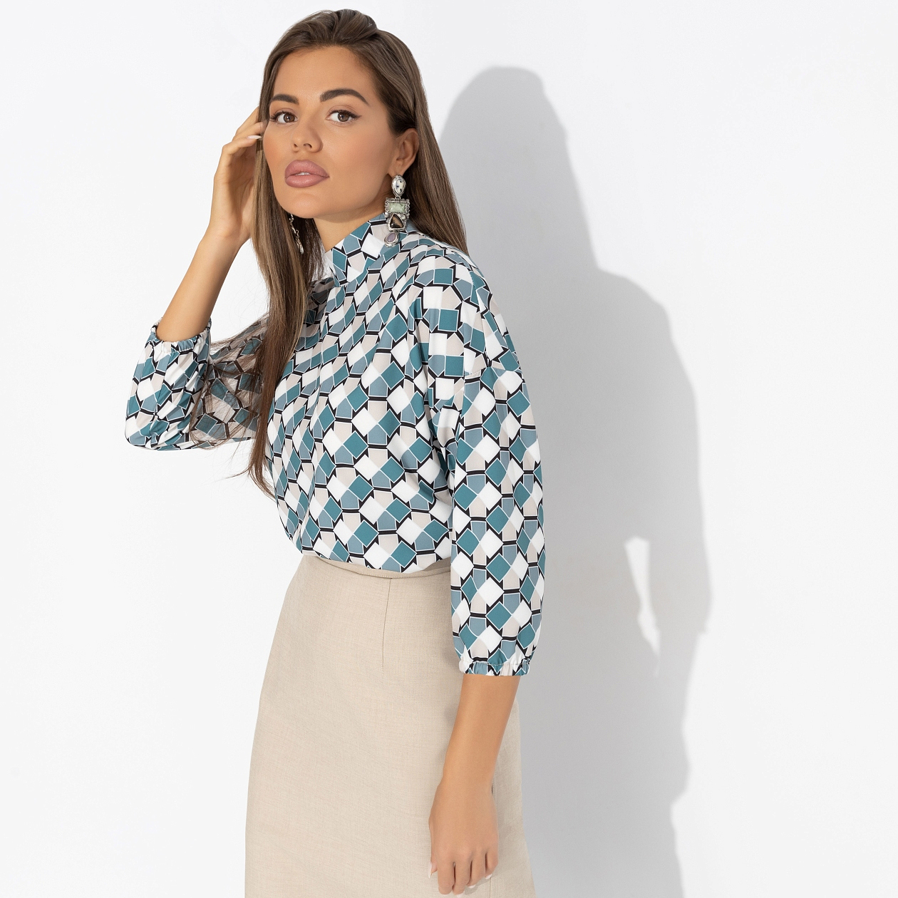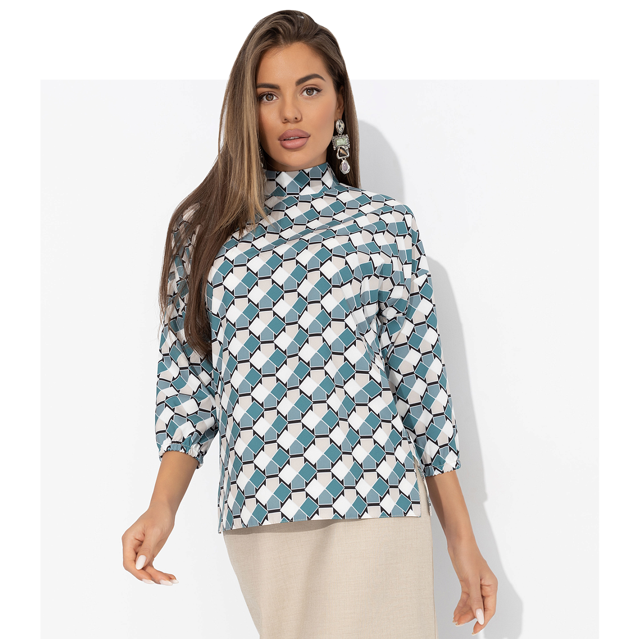Блуза ЧАРУТТИ с гипнотическим принтом притягивает восхищенные взгляды. Игра линий создает эффект движения – будто ты в самом центре модного вихря. Каждый поворот – повод для нового комплимента, ведь тебя в блузе ЧАРУТТИ просто невозможно не заметить! Блуза свободного силуэта. Изделие хорошо смотрится в заправленном виде и навыпуск. Воротник-стойка, деликатная пуговица по задней части ворота.