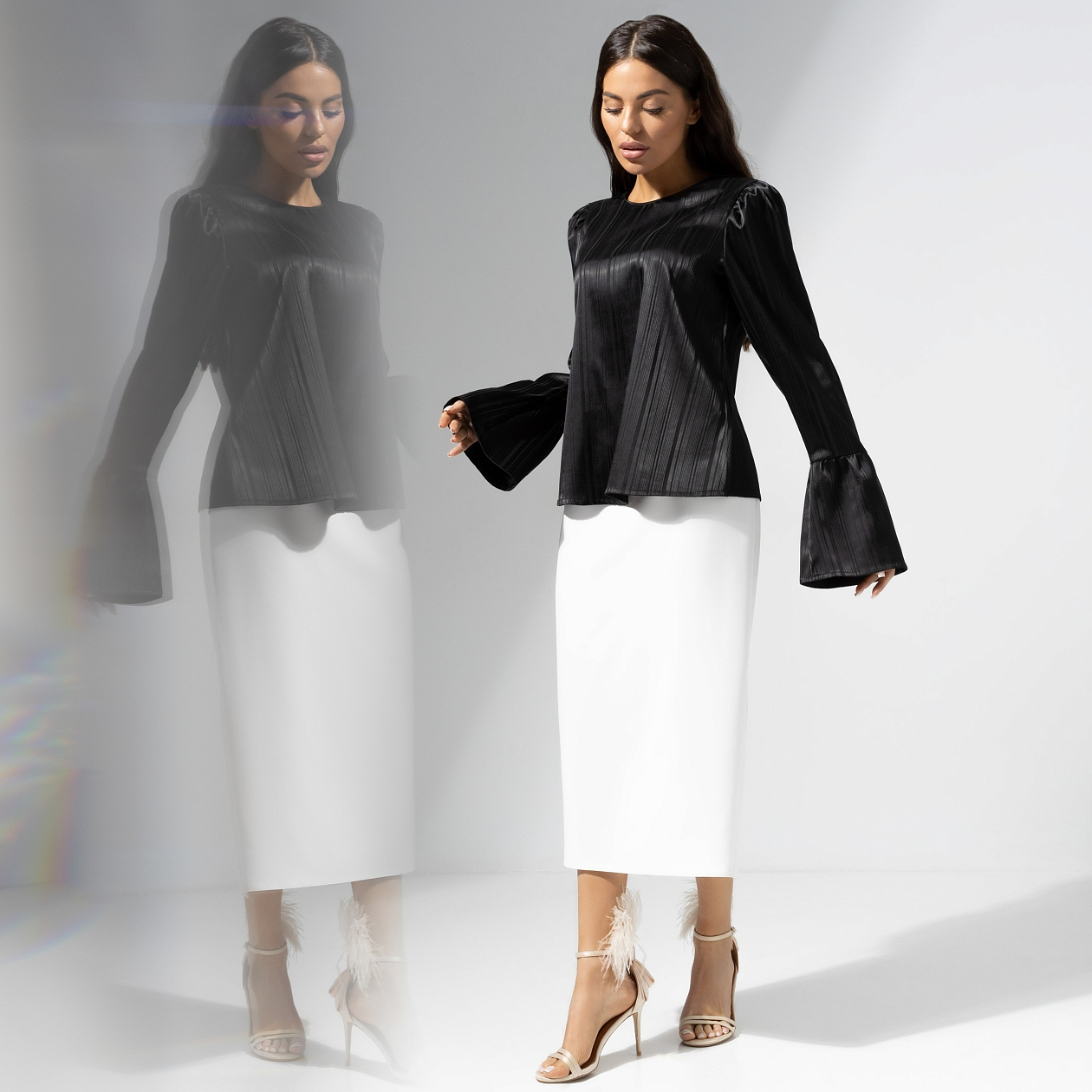 Йога по утрам, два стакана теплой воды с лимоном и минимум 30 минут чтения в день – всё для того, чтобы стать лучшей версией себя. С каждым днем ты чувствуешь больше энергии. Появляется настроение наряжаться. Выбирай блузу CHARUTTI в элегантном черном цвете на пути самосовершенствования. Блуза прямого кроя с удлиненными дизайнерскими рукавами. Расклешенная манжетная часть рукава. Изделие имеет акцентную молнию по спинке. Хорошо смотрится в заправленном виде и навыпуск.