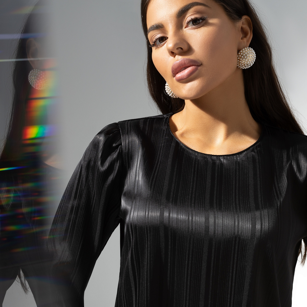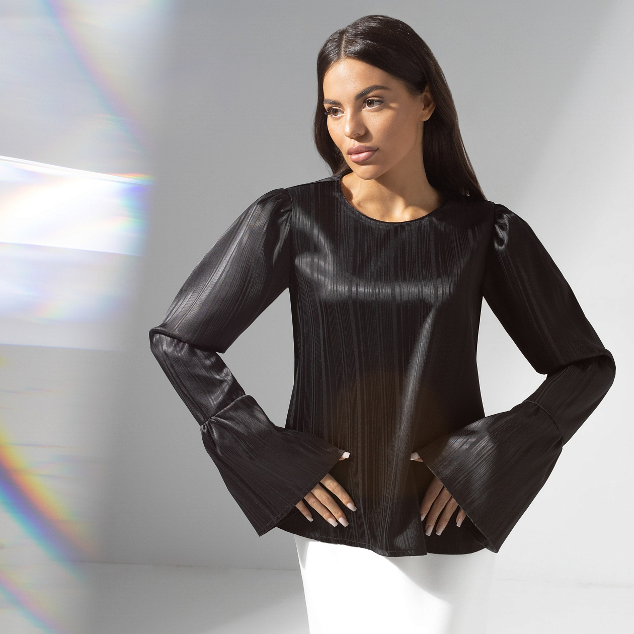 Позвольте представить вам изысканную женскую блузу «Королева звезд», выполненную из ткани жаккард, которая станет настоящим украшением вашего гардероба. Эта блуза женская нарядная вечерняя — идеальный выбор для любого особого случая, благодаря своему элегантному черному цвету и утонченному дизайну. Прямой крой и удлиненные дизайнерские рукава, расклешенные на манжетах, добавляют изюминку, делая вашу фигуру визуально стройнее. Блуза с акцентной молнией на спинке придает образу загадочности и изысканности. Она станет отличным дополнением как к деловому, так и к вечернему наряду, подчеркивая вашу индивидуальность и стиль.