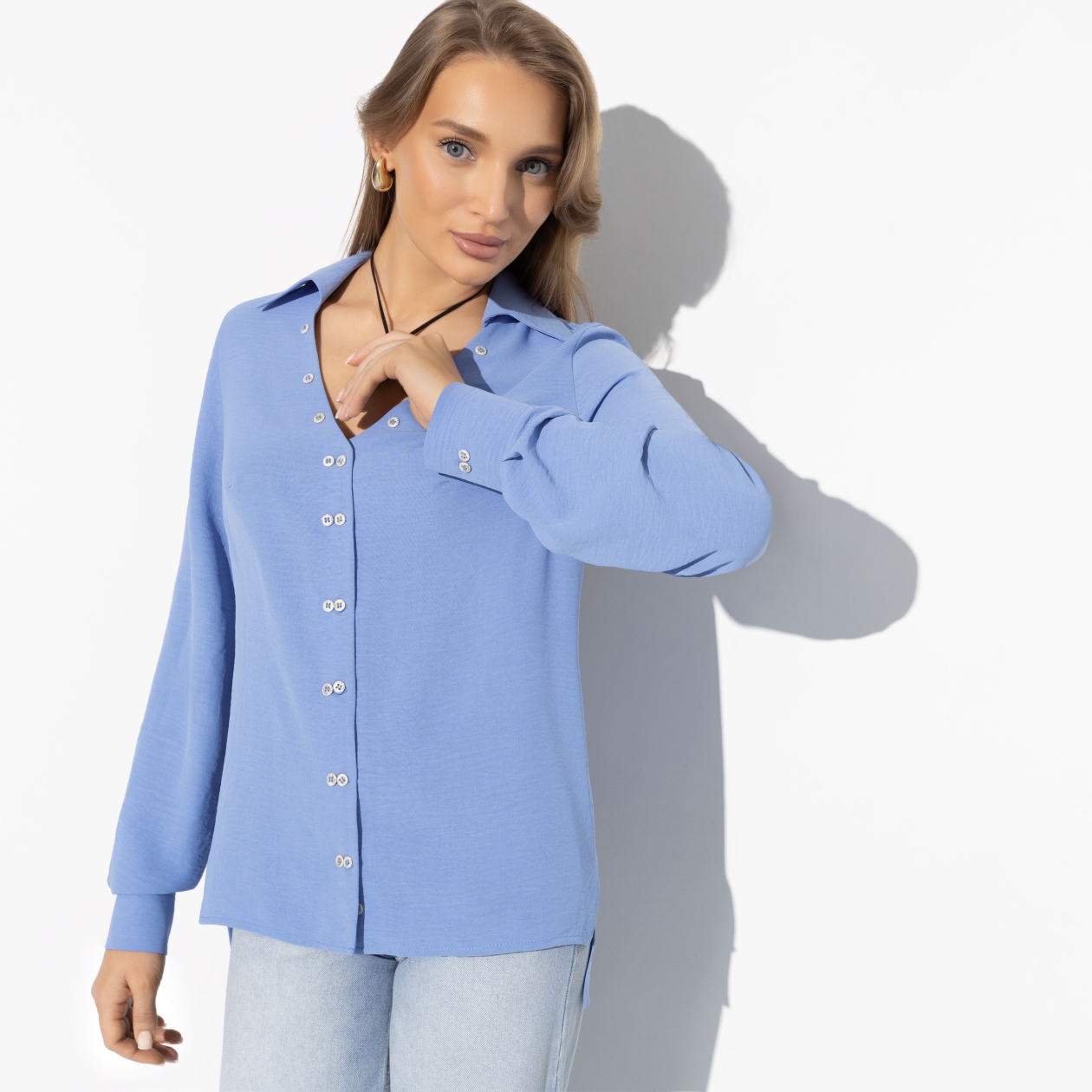 Эта блуза «Сбежим из офиса (chic sky)» из ткани «турецкий шифон дорна» идеально подходит для тех, кто хочет добавить немного свежести и оригинальности в свой деловой гардероб. Если вы планируете купить блузы оптом, эта модель станет отличным выбором благодаря своему насыщенному голубому цвету, который добавляет изысканности и яркости. Бизнес-кэжуал еще никогда не выглядел так привлекательно! Вдохновленный небесной палитрой, этот оттенок придаст вашей повседневной офисной одежде легкость и воздушность, делая вас более уверенной и стильной в любое время дня.