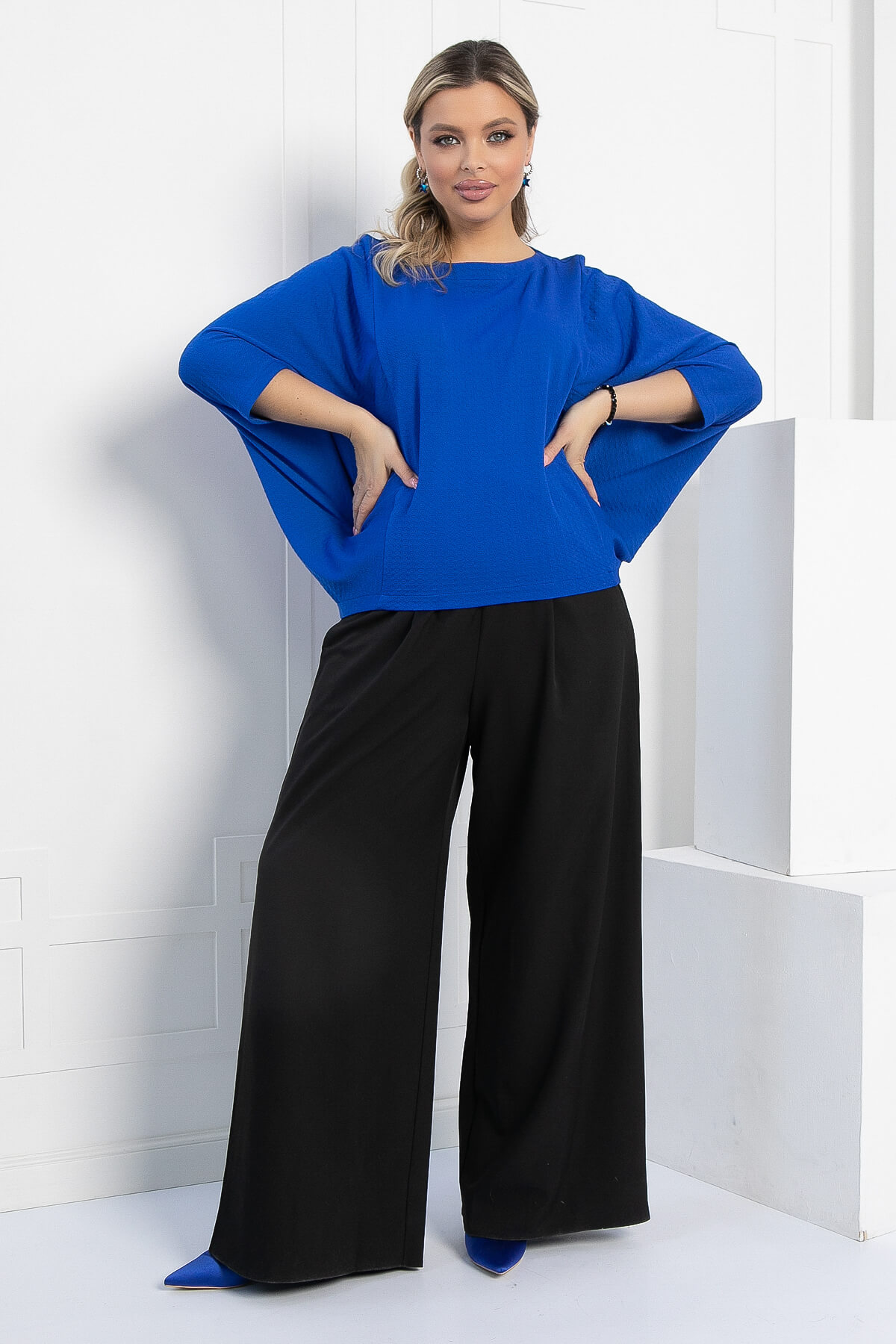 Блузка отснята с белыми брюками арт. Б12685-13 и с черными брюками арт. Б10952