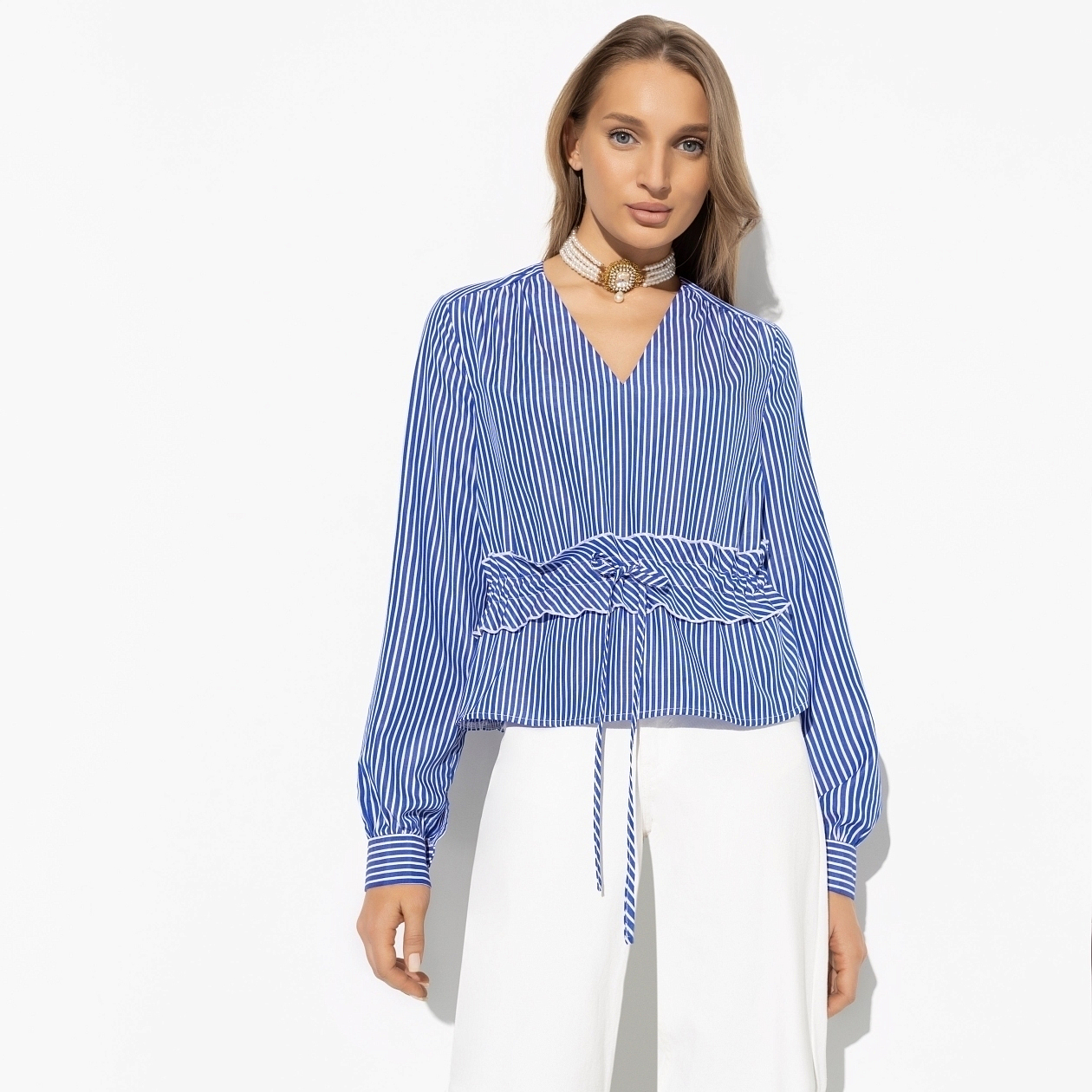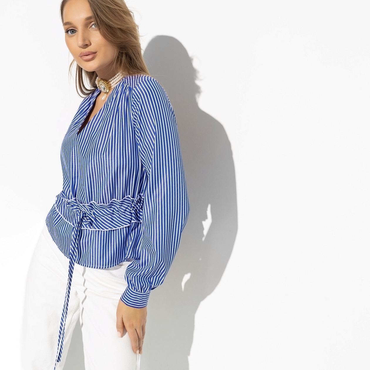 Эта блуза — идеальный выбор для деловых встреч, важных мероприятий или расслабленных прогулок. Благодаря классическому узору в полоску, она легко сочетается с различными элементами гардероба, будь то строгие брюки или джинсы. Ваша уверенность в себе возрастет, ведь вы будете знать, что выглядите безупречно. Купив эту блузу оптом, вы получаете возможность радовать своих клиентов или сотрудников не только красотой, но и качеством, которое подчеркивает ваш утонченный вкус и внимание к деталям.