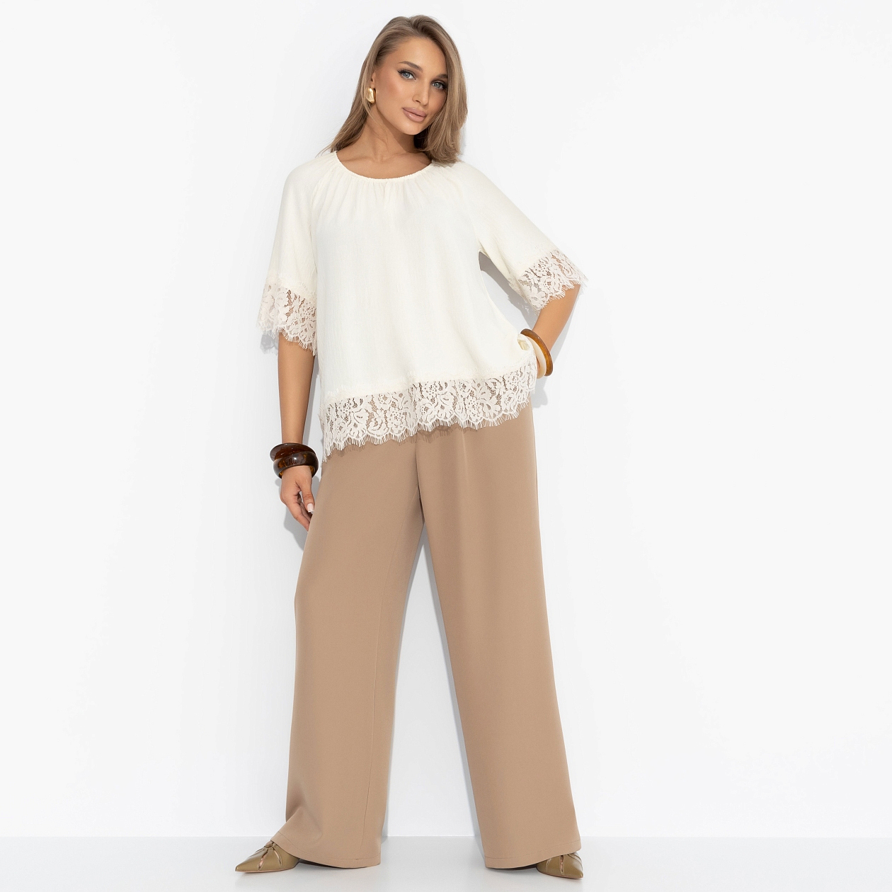 Блуза свободного кроя с кружевом, Путешествие в Прованс (нежная)