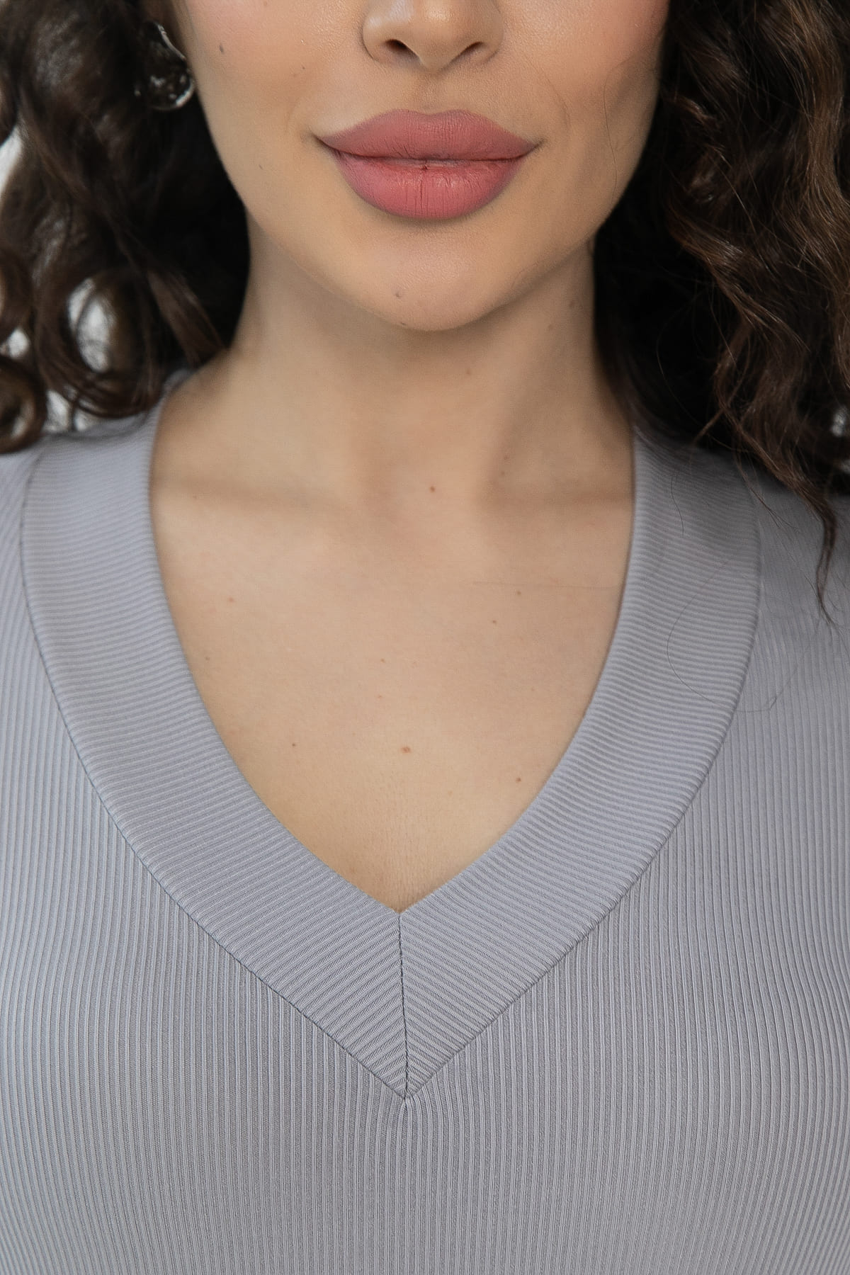 Однотонная блузка без принта – настоящий маст-хэв! Благодаря своей универсальности, она легко сочетается с практически любой одеждой, создавая множество стильных образов. V-образный вырез подчеркивает линию декольте, а короткий рукав делает ее идеальным выбором для теплого времени года или как базовый слой под пиджак или кардиган. Материал хорошо тянется.