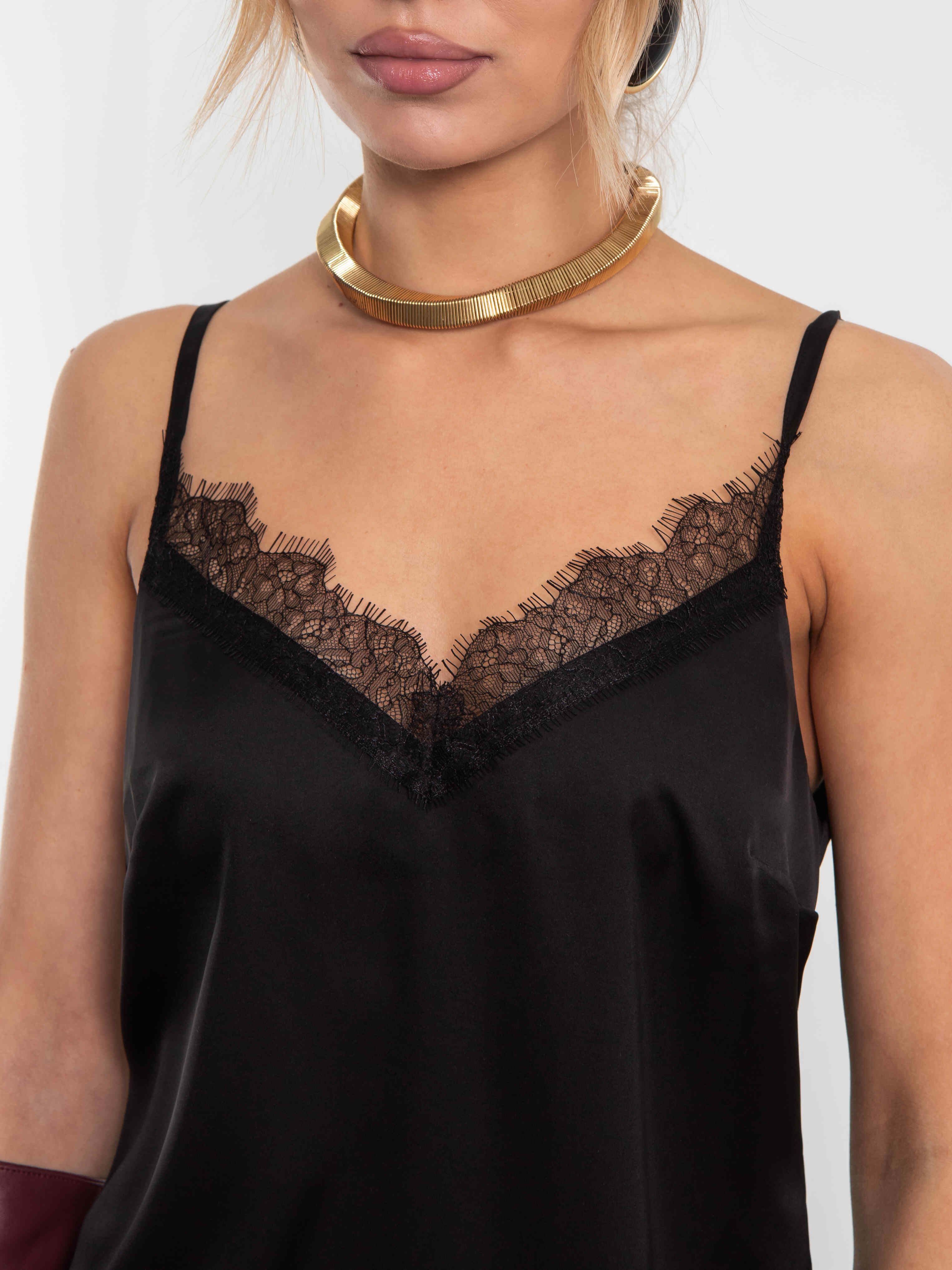 Представляем вам изящный топ на тонких бретелях, выполненный из роскошного дубайского шёлка и украшенный деликатным французским кружевом. Нежная ткань мягко облегает фигуру, подчёркивая её женственность и грациозность. Бретели выполнены в тон основному материалу, обеспечивая комфорт и удобство в носке. Кружево добавляет изделию особую изысканность и очарование, превращая простой топ в настоящий элемент стиля. Топ станет прекрасным дополнением к любому гардеробу, позволяя создать неповторимый образ для особенных случаев или повседневных образов.