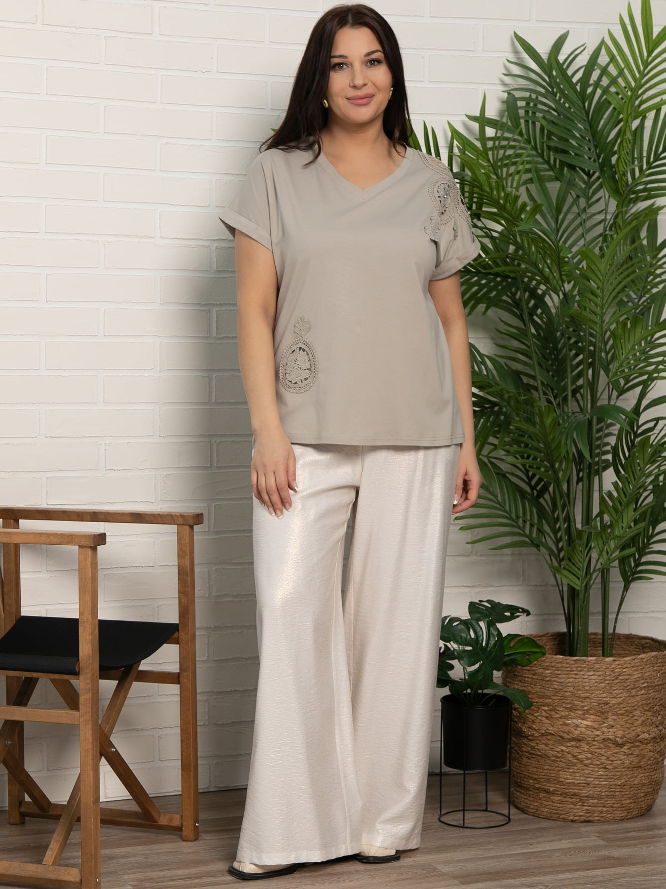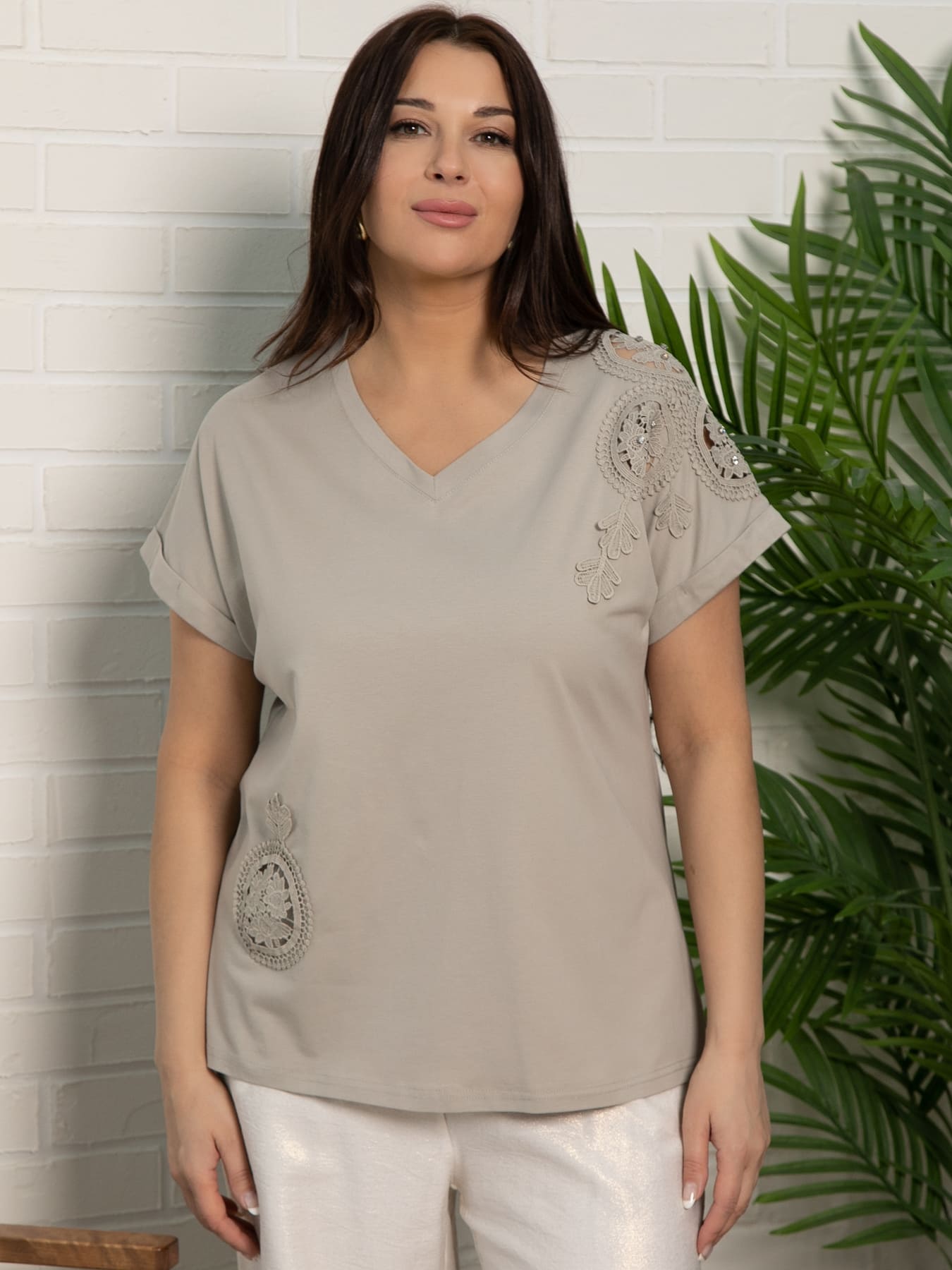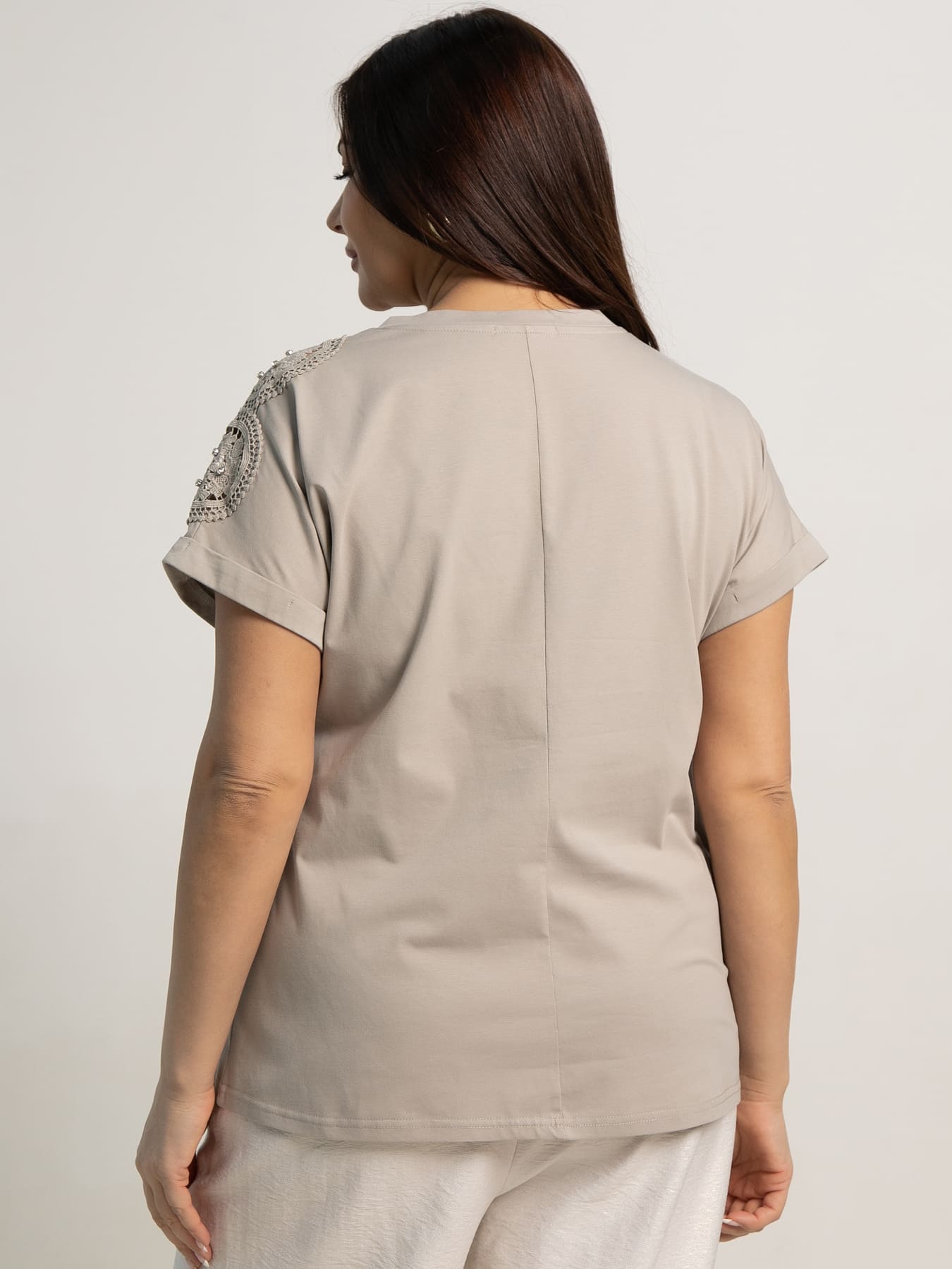 Блуза с короткими рукавами, украшенная вставками из кружева и дополненная стразами — это отличный способ разнообразить свой повседневный гардероб. В этой модели использованы элегантные кружевные вставки, которые придают ей изысканность и романтичность. Её можно сочетать с джинсами, юбками или брюками. Эта блуза станет идеальным выбором как для работы, так и для встреч с друзьями. Она придаст вашему образу нотку шика и утончённости.