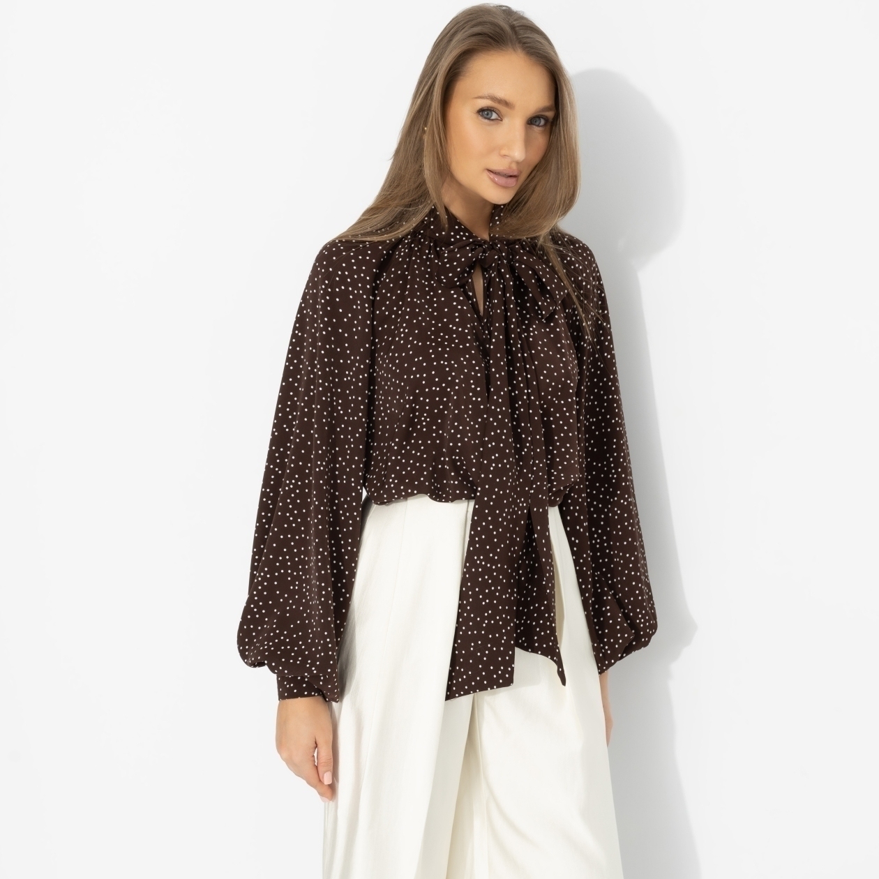 Будто Флоренс Пью вне красной дорожки! Она выбирает глубокие, «вкусные» оттенки и струящиеся силуэты вместо очевидной глянцевости. Шоколадный цвет звучит дорого и современно, объёмные рукава создают эффектную линию, длинные завязки добавляют драмы каждому движению. Ткань мягко струится, но держит форму. Так выглядит роскошь без надрыва – молодо, смело и с характером.