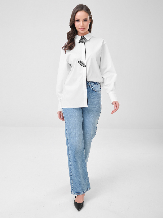 Блузка с декоративным цветком.