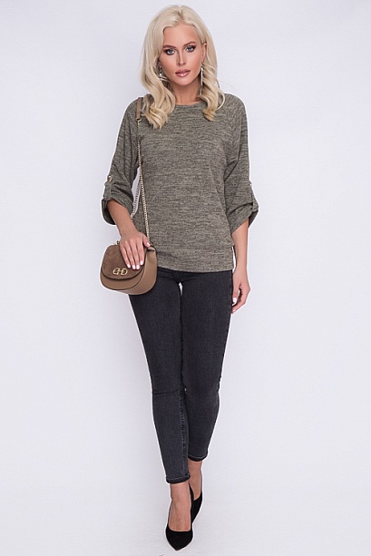 Блузка из меланжевого трикотажа свободного силуэта.Рукав реглан с патой.