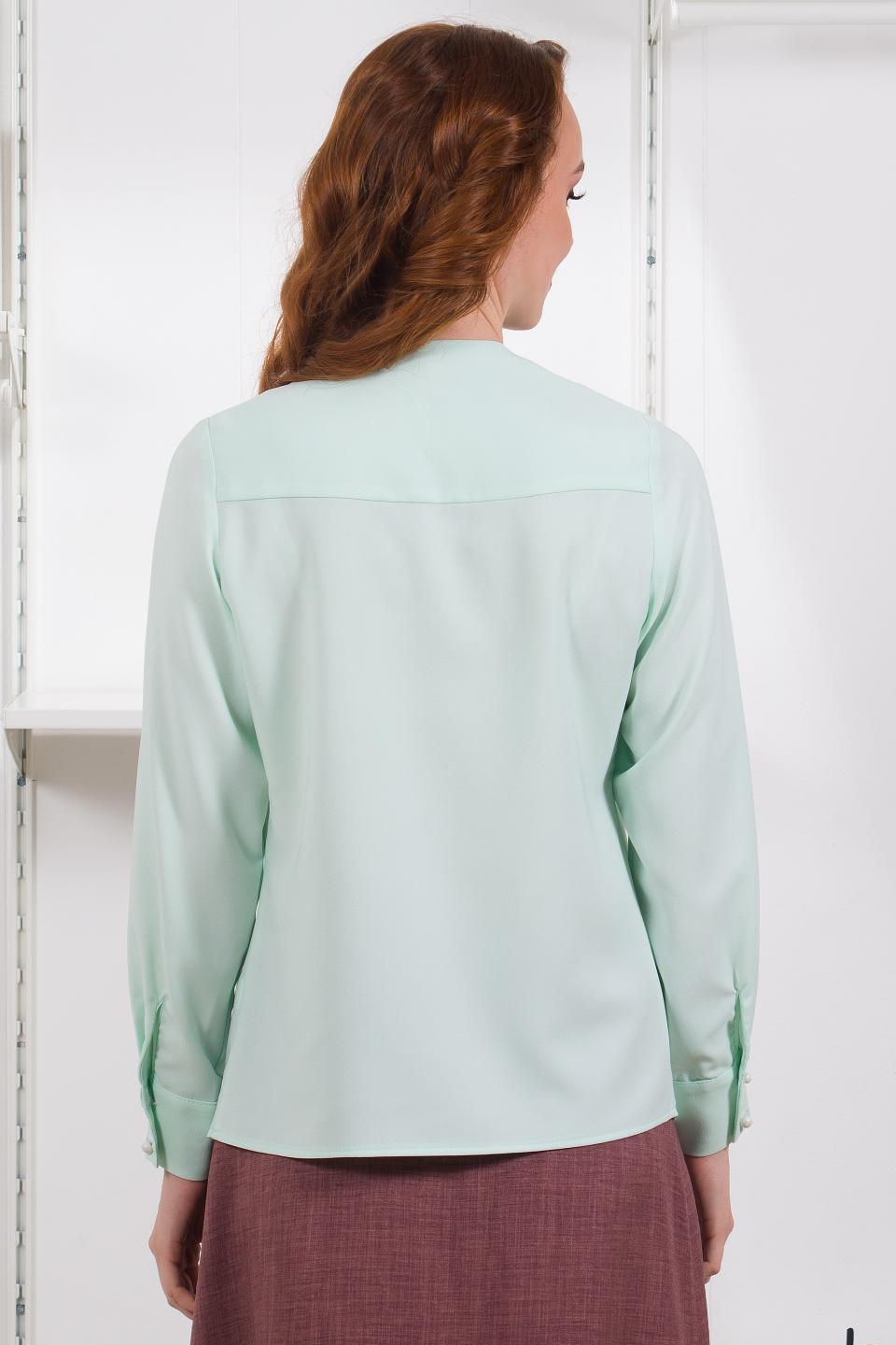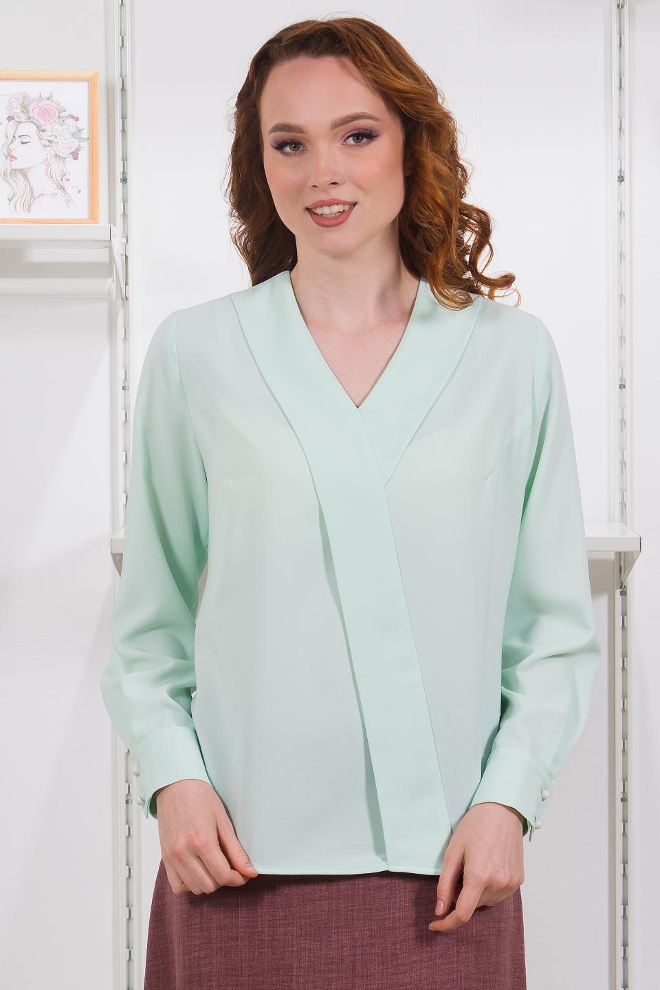 Описание: V-образный вырез, зрительно удлиняющий шею, дополнен отлетными вставками, рисующими динамичный крой блузки.