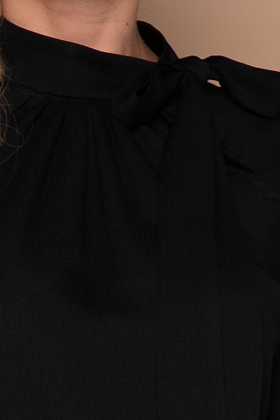 Блузка из текстильного полотна свободного силуэта с рукавами реглан,со сборкой от горловины и воротником стойка  застегивающимся на потайную пуговицу и переходящим в шарф.