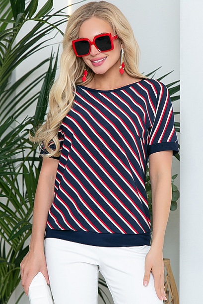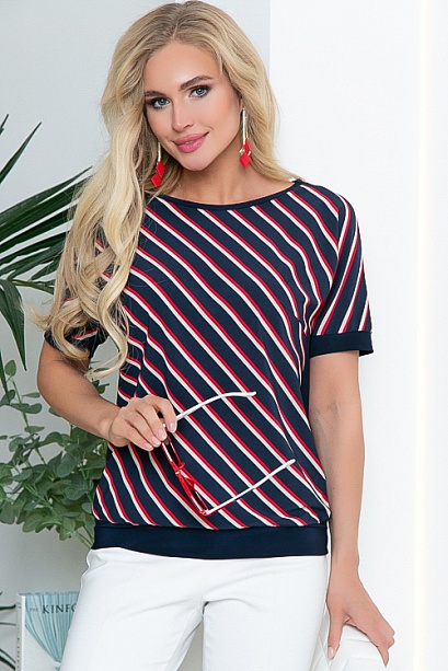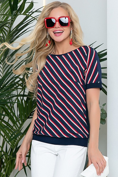 Комбинированная блузка из текстильного полотна в полоску и трикотажного полотна по спинке.