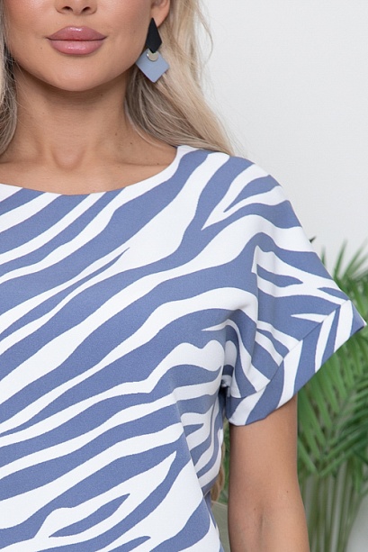 Блузка из текстильного полотна с цельнокроеными рукавами и притачным поясом из трикотажной рибаны.
