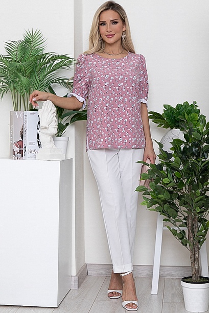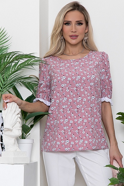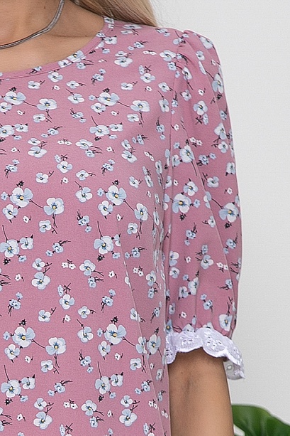 Блузка из текстильного полотна,рукав украшен хлопковым кружевом с вышивкой.