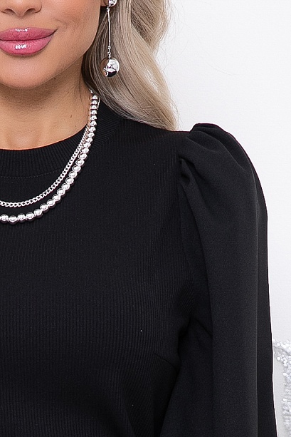 Блузка из трикотажного полотна мелкая лапша(ткань производство Турция) скомбинирована с пышными рукавами из текстильного полотна, посажеными на манжет из основной ткани.