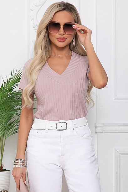 Блузка из трикотажного полотна лапша с V вырезом горловины.