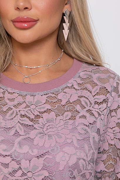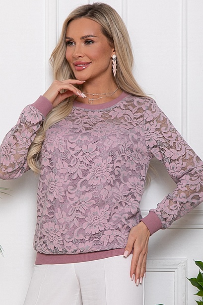 Блузка из плетеного кружева на подкладе.Горловина,манжеты и притачной пояс из хлопковой трикотажной рибаны.