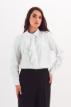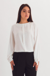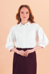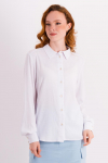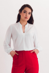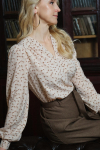 Описание: Роскошная блузка на запАх блещет интеллектуальной красотой, демократично прикрывая зону декольте. Мягкие драпировки обеспечивают комфортную посадку. Пышные рукава со сборкой собраны на высокие манжеты.