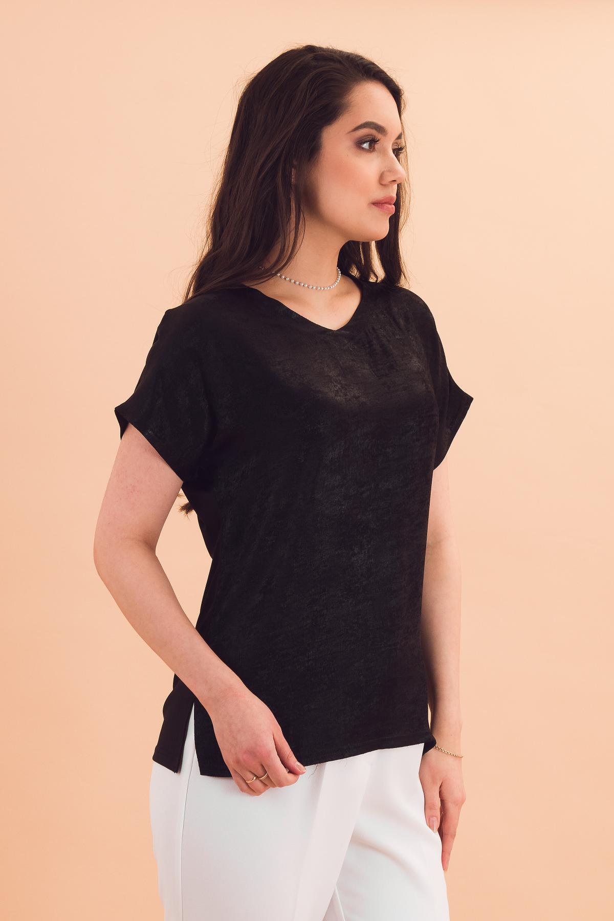 Описание: Свободная блузка со спущенным плечом дарит комфорт движений и стильный образ! Неглубокий V-образный вырез, небольшие разрезы по боковым швам.