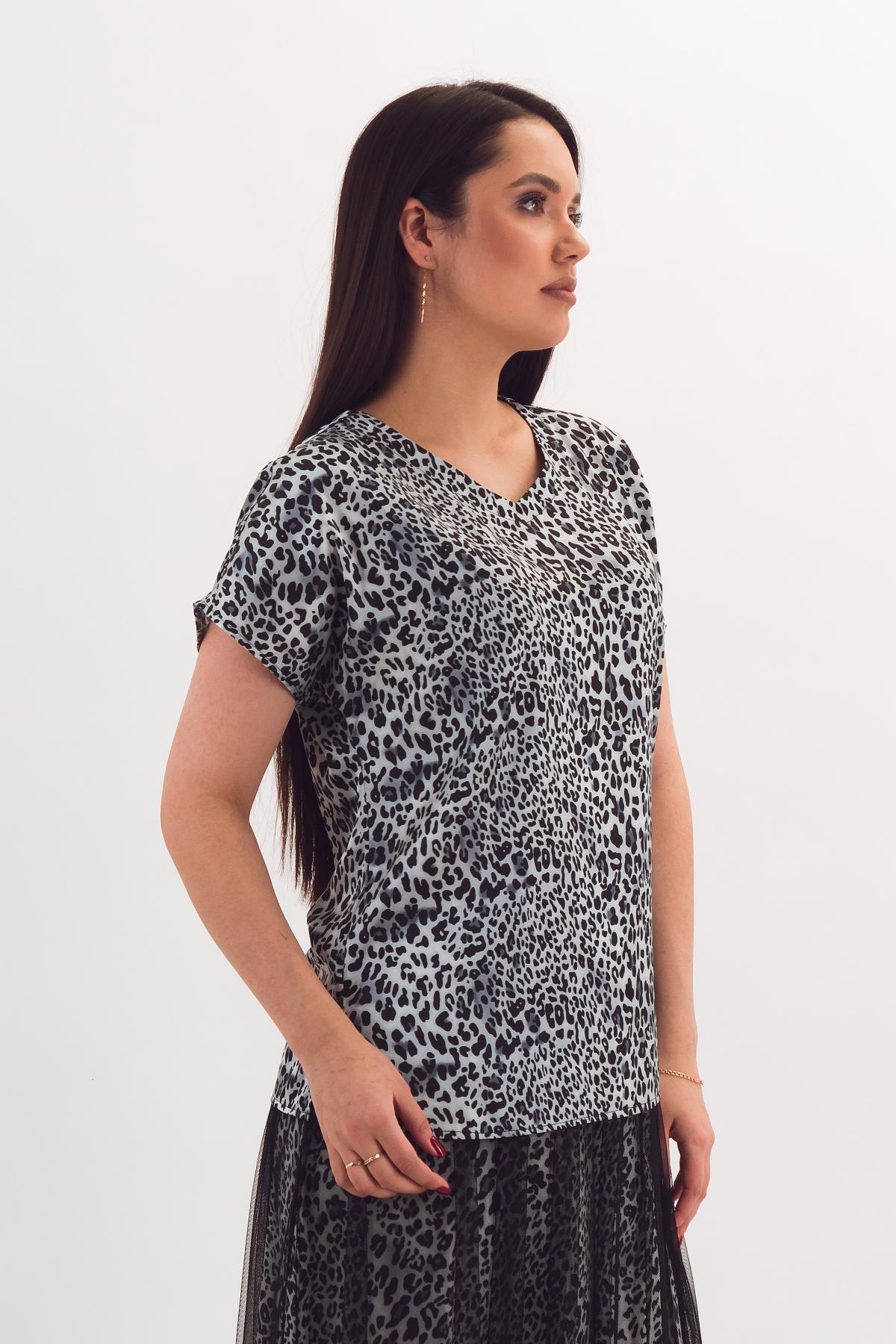 Описание: Свободная блузка со спущенным плечом дарит комфорт движений и стильный образ! Неглубокий V-образный вырез, небольшие разрезы по боковым швам.