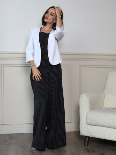 Модель блузки полуприлегающая, что позволяет сохранить баланс между свободой движений и утонченностью силуэта. Такой крой выгодно подчеркивает достоинства фигуры, не сковывая ее.