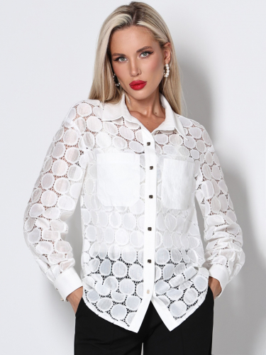 Блузка отличается уникальным дизайном кружева, который не оставит без внимания, добавит шарма вашему образу приковывая взгляды окружающих. Особенностью данной модели являются легкость и изысканность ткани, делая рубашку идеальным выбором для офисного стиля. Кружевная модель будет прекрасным выбором на любое торжество, а так же деловые встречи. Блузка офисная нарядная представляет собой изысканный и элегантный элемент женского гардероба, идеально подходящий для делового образа. Большой размерный ряд порадуют полных женщин. Винтажный стиль подчеркнет ваши достоинства фигуры. С такой блузкой вы всегда будете выглядеть стильно, красиво и модно.