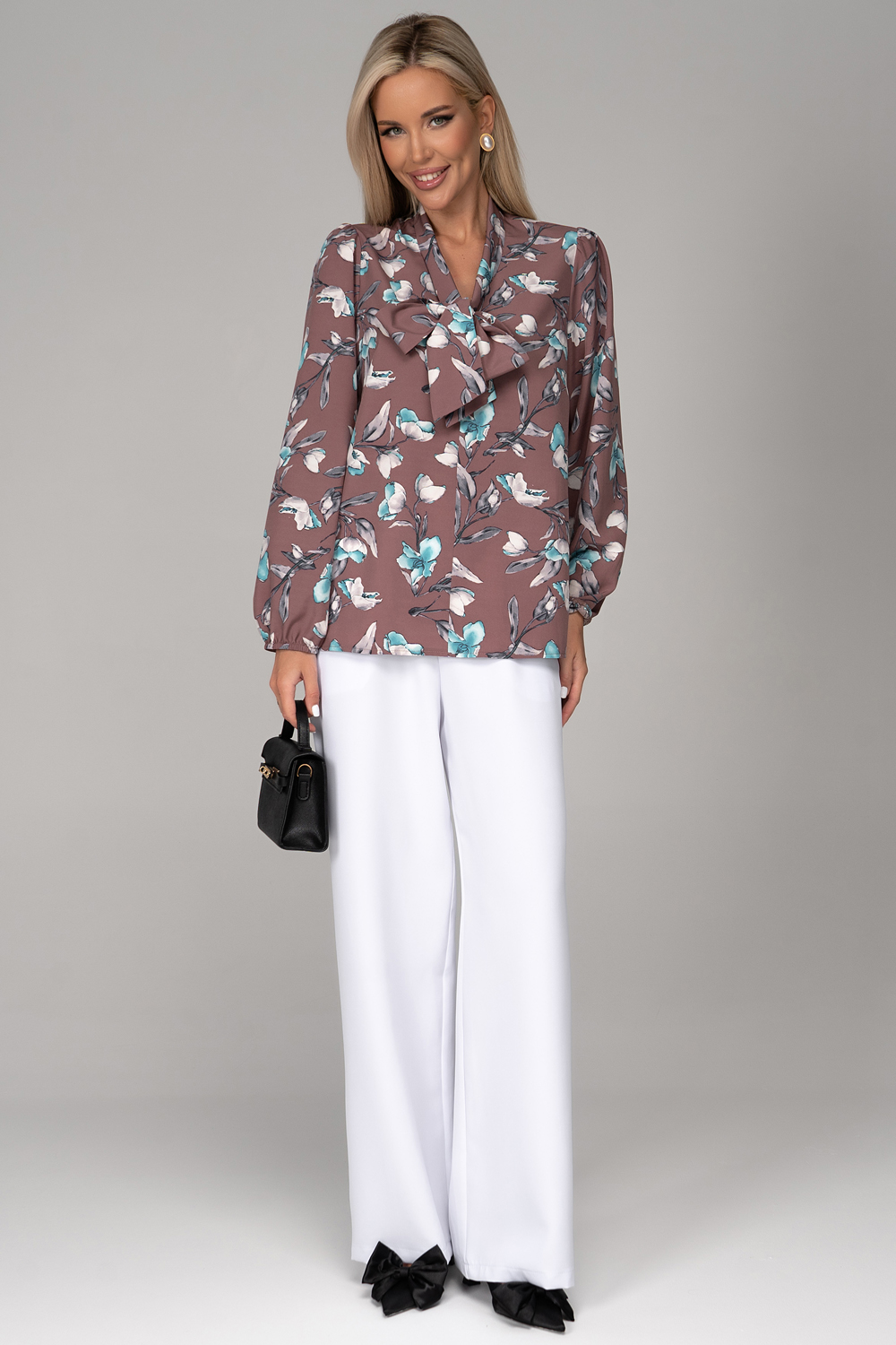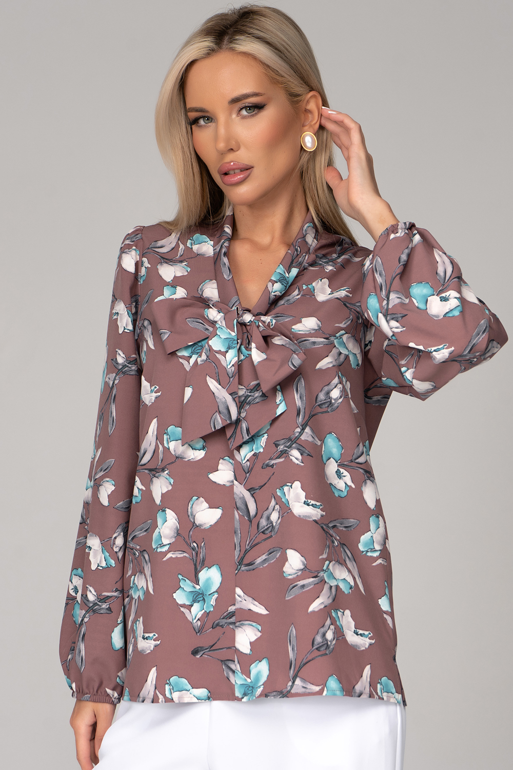 Блузка “Бант” – это стильное и элегантное дополнение к вашему гардеробу. Модель выполнена в нежных оттенках,  которые придают образу свежести и женственности.  Стильный бант спереди придают блузке особый шарм, делая ее идеальной как для деловых встреч, так и для вечерних выходов. Она прекрасно дополнит ваш городской образ, будь то повседневная прогулка, праздник или выход в театр.