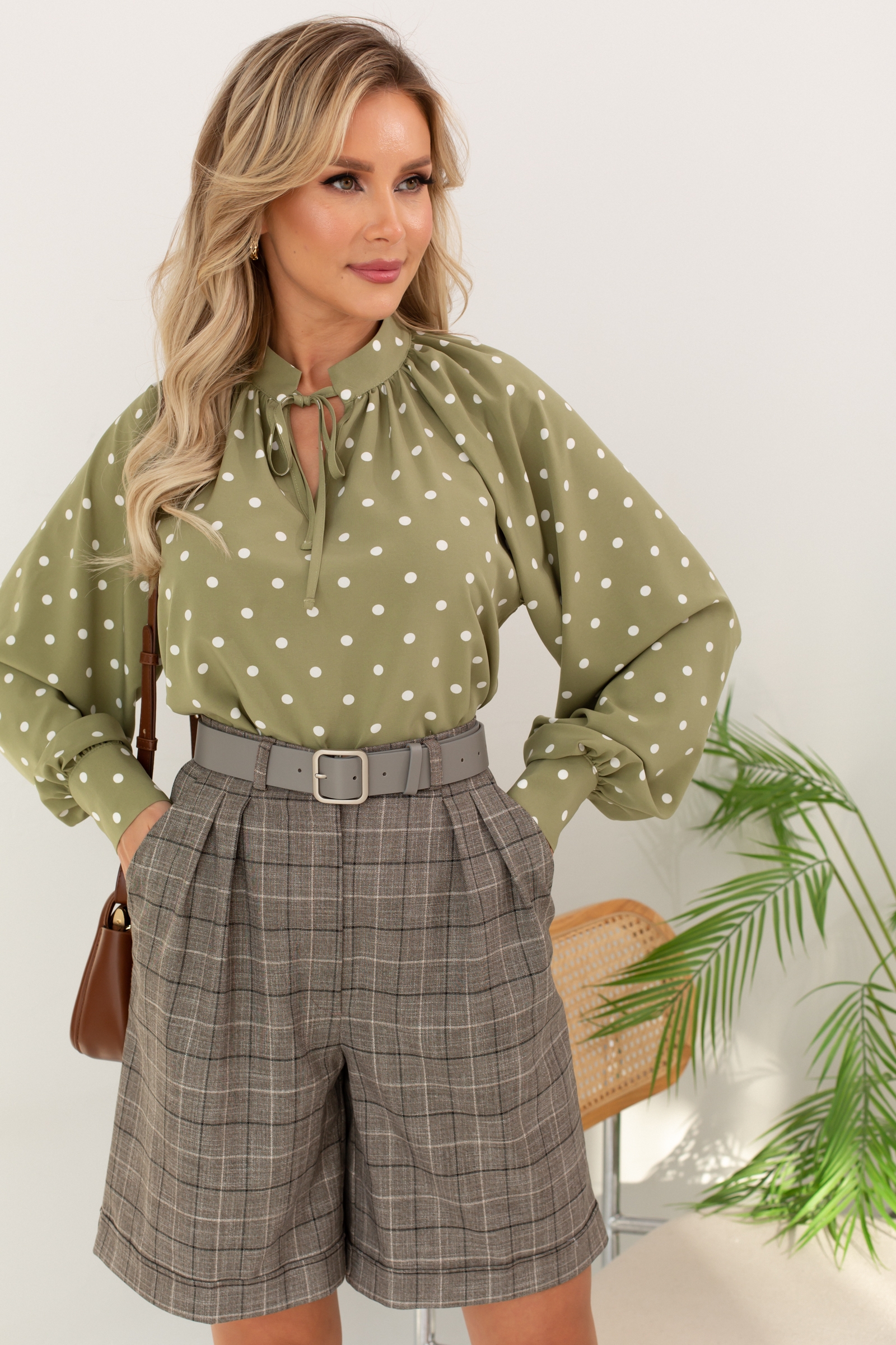 Блузка представлена с шортами Пэйдж №5, Ремень №148