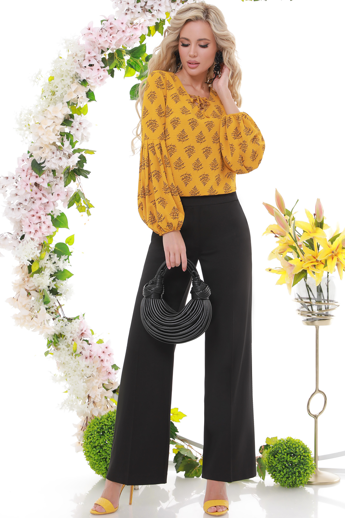 Блузка горчичного цвета со шнуровкой