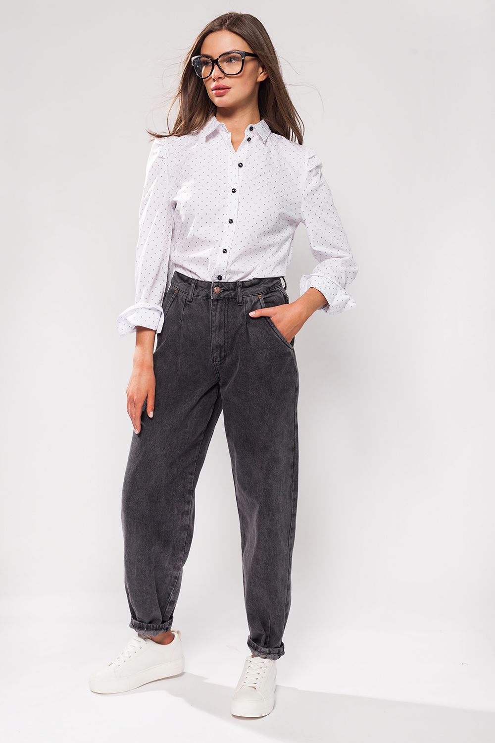 Блузка из хлопка с полиэстером. Полиэстер сохраняет гладкость и формоустойчивость ткани, делает ткань проще в уходе. Главным элементом блузки являются трендовые защипы по окатам рукава, которые становятся ведущим акцентом в любом луке. Особенный эффект сохдает игра мемлкого рисунка ткани с контрастными пуговицами блузки.