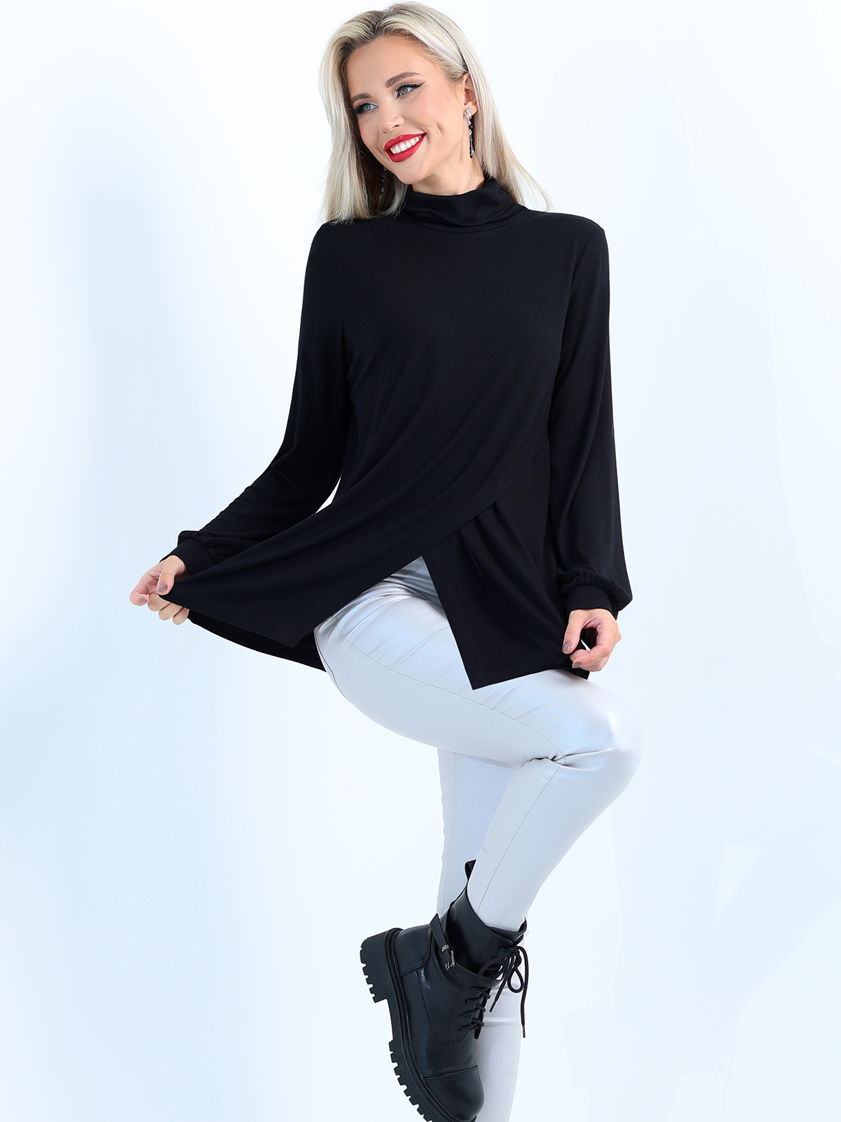 Стильная водолазка создана специально для женщин, ценящих комфорт и элегантность. Эта блузка трикотажная больших размеров станет незаменимой вещью в вашем гардеробе, благодаря своей универсальности и удобному крою. Мягкая ткань из 100% вискозы приятно облегает фигуру, а расклешенный силуэт кофты с имитацией запаха придает образу женственность и легкость. Водолазка станет отличной основой для разных стилей: повседневного, делового и офисного.
