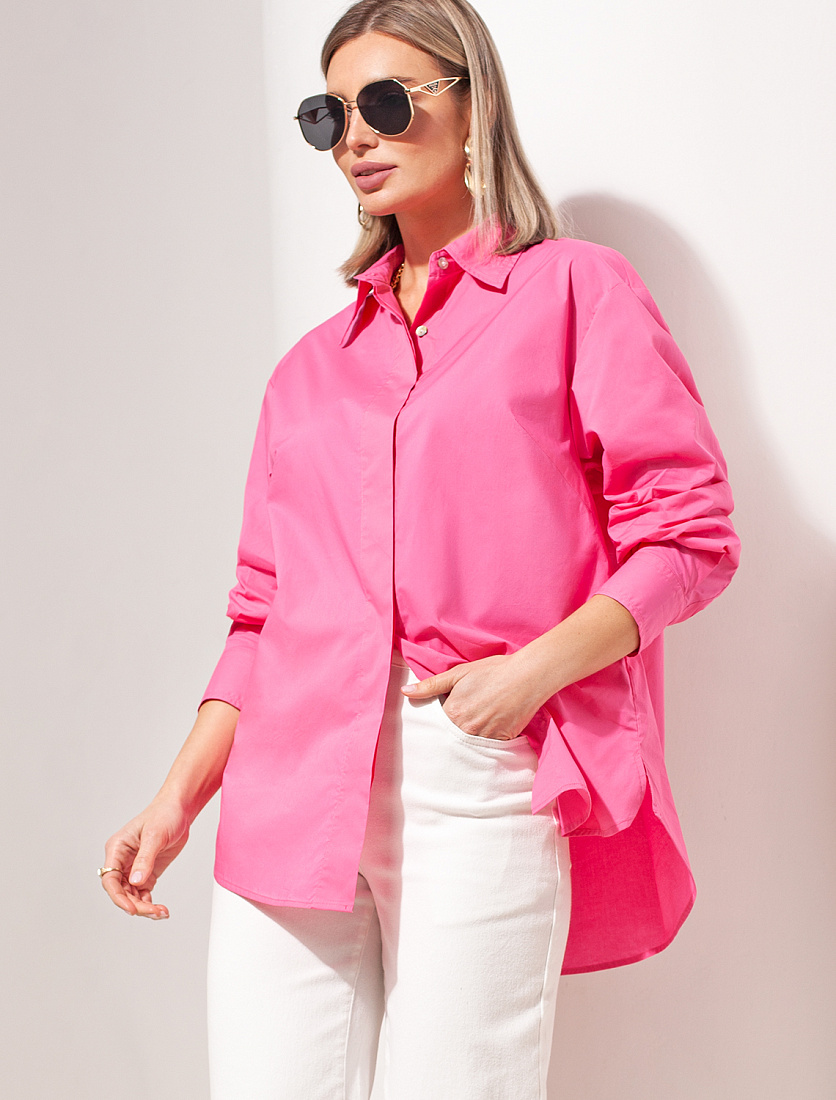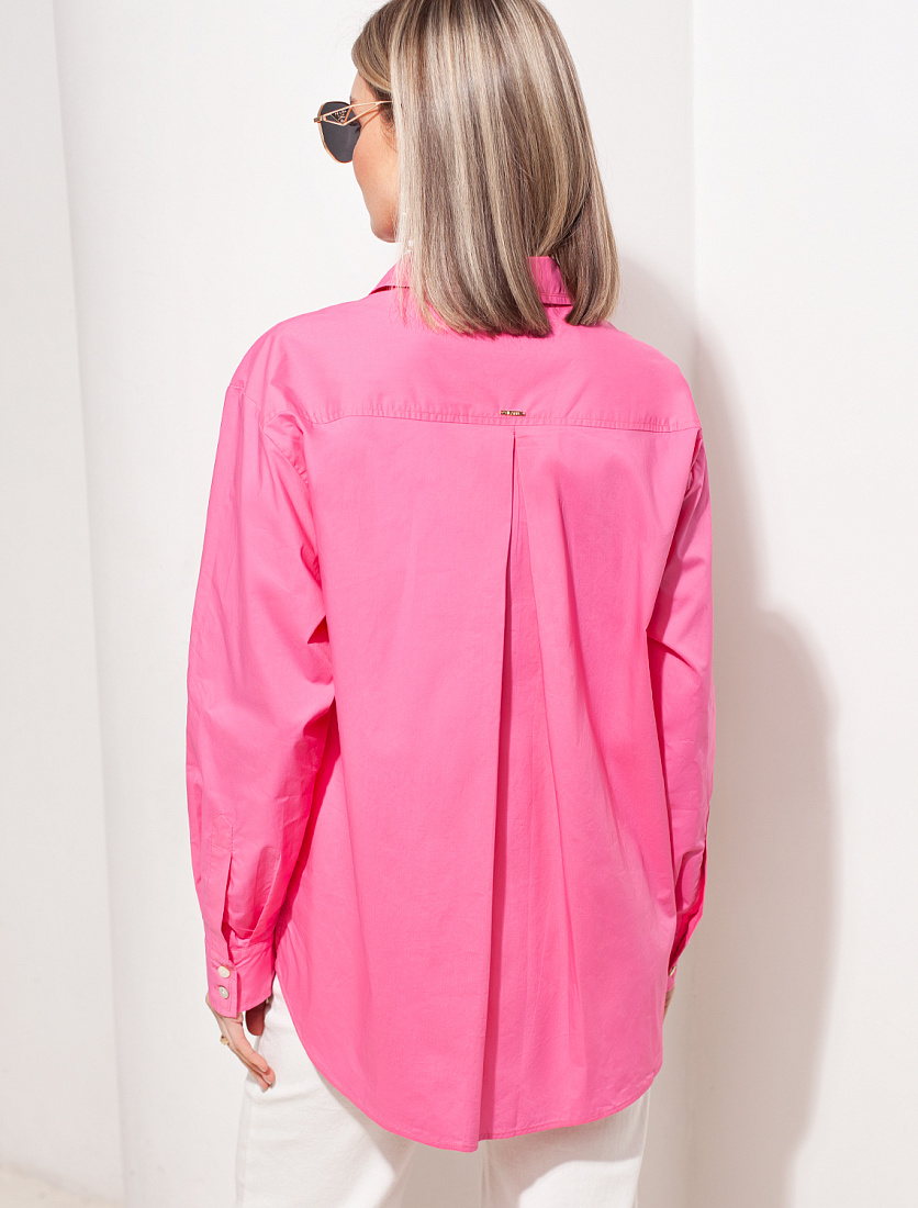Свободная блузка со спущенной линией плеча и застежкой планкой выполнена из премиального хлопкового поплина. Пуговицы из натурального перламутра. На спинке изделия металлический логотип бренда. Оптимальная длина изделия позволяет составить образы в расслабленном стиле. 100%Хлопок