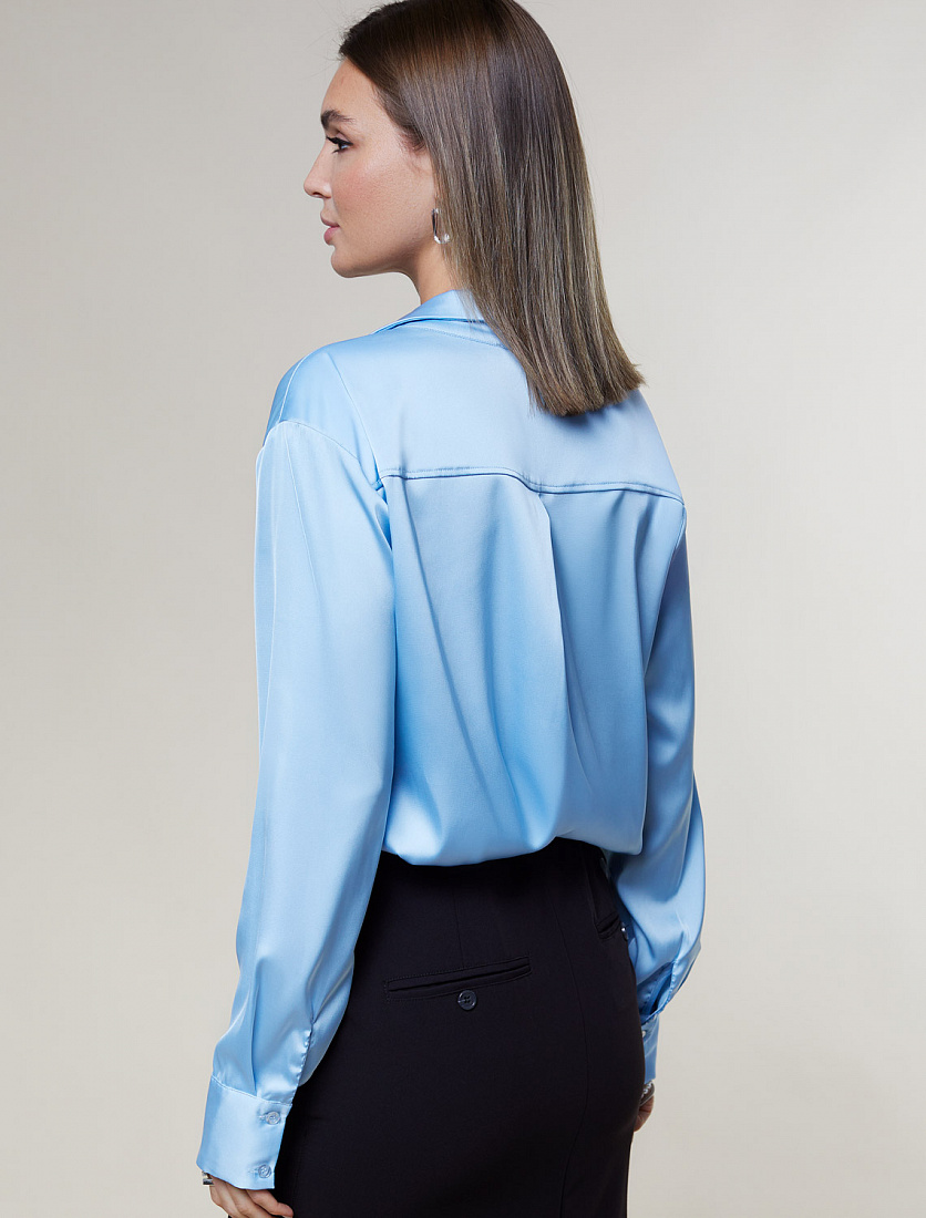Блузка прямого силуэта выполнена из эластичного струящегося сатина.. Невероятно женственная модель в тренде на пижамный стиль, изящно струится и драпируется по фигуре, напоминая натуральный шелк. Лаконичный дизайн поддерживает застежка планка на потайные пуговицы. Сочетайте изделие с жакетами и строгими брюками, внося в образ легкое настроение.