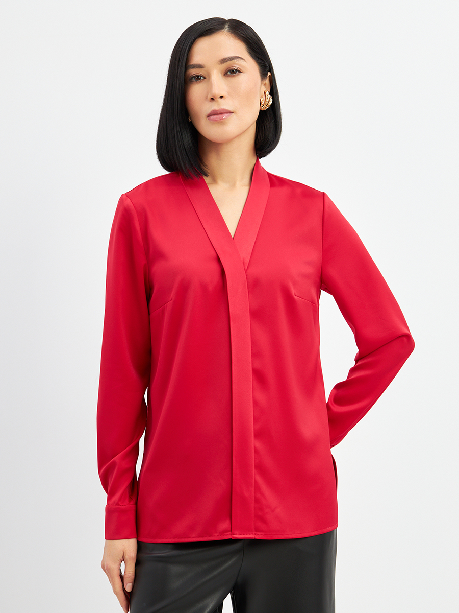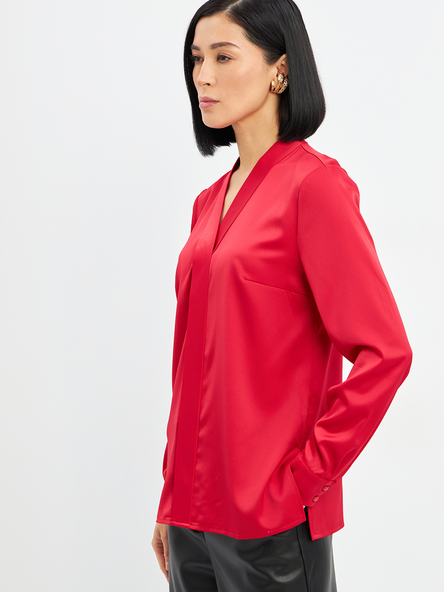 Блузка из сатина с V вырезом OD-8071-4 красный