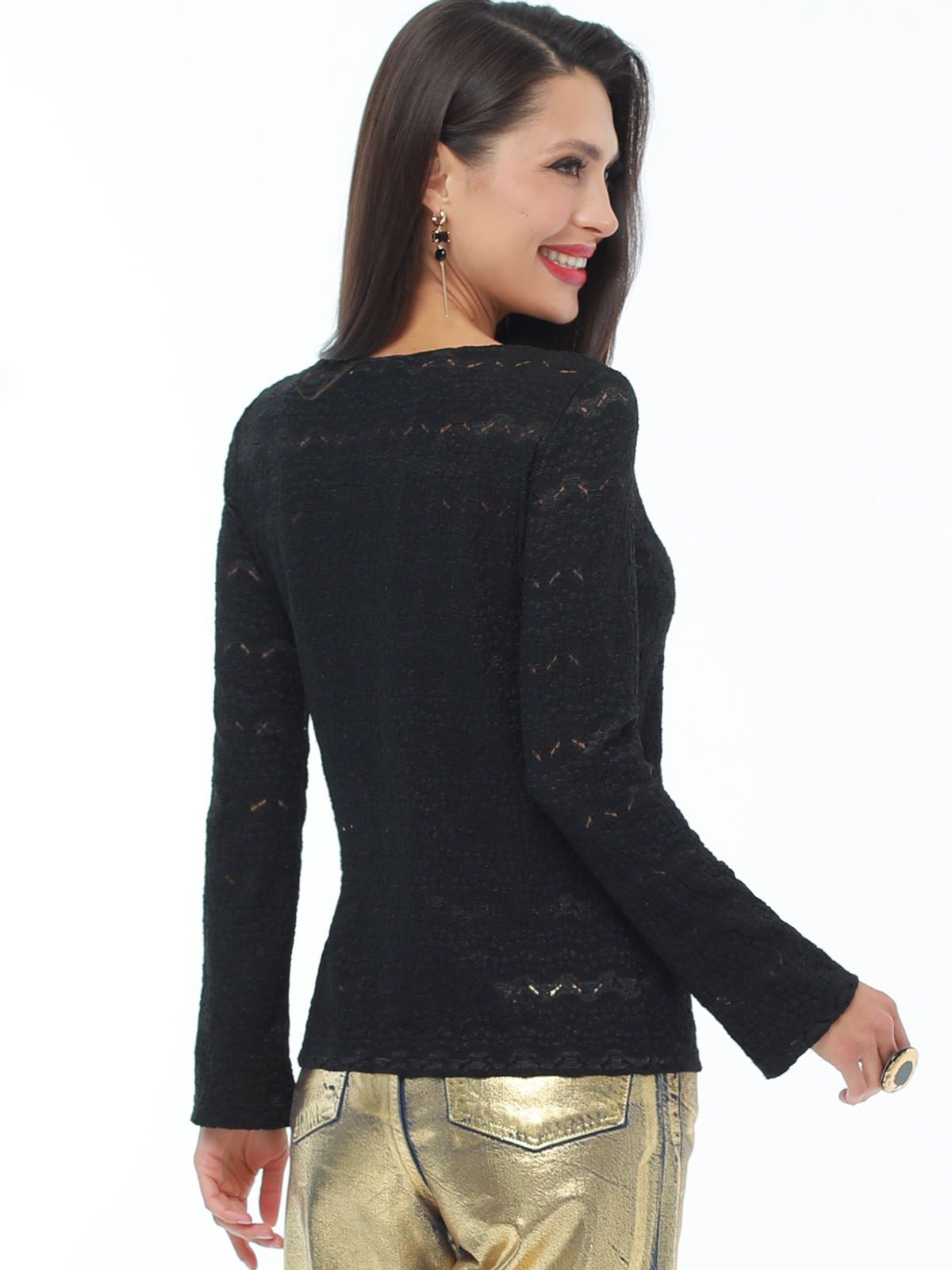 Блузка изготовленная из кружевного полотна. Благодаря универсальному дизайну, блузка легко сочетается с различными видами одежды – от классических юбок и брюк до джинсов и шортов. Это позволяет создавать разнообразные образы, подчеркивающие индивидуальный стиль и вкус. Уход за блузкой требует бережной стирки при температуре 30 градусов, что помогает сохранить её первоначальный вид и качество на долгое время. Рекомендуется стирать изделие вручную или в деликатном режиме стиральной машины, используя мягкие моющие средства.