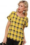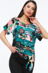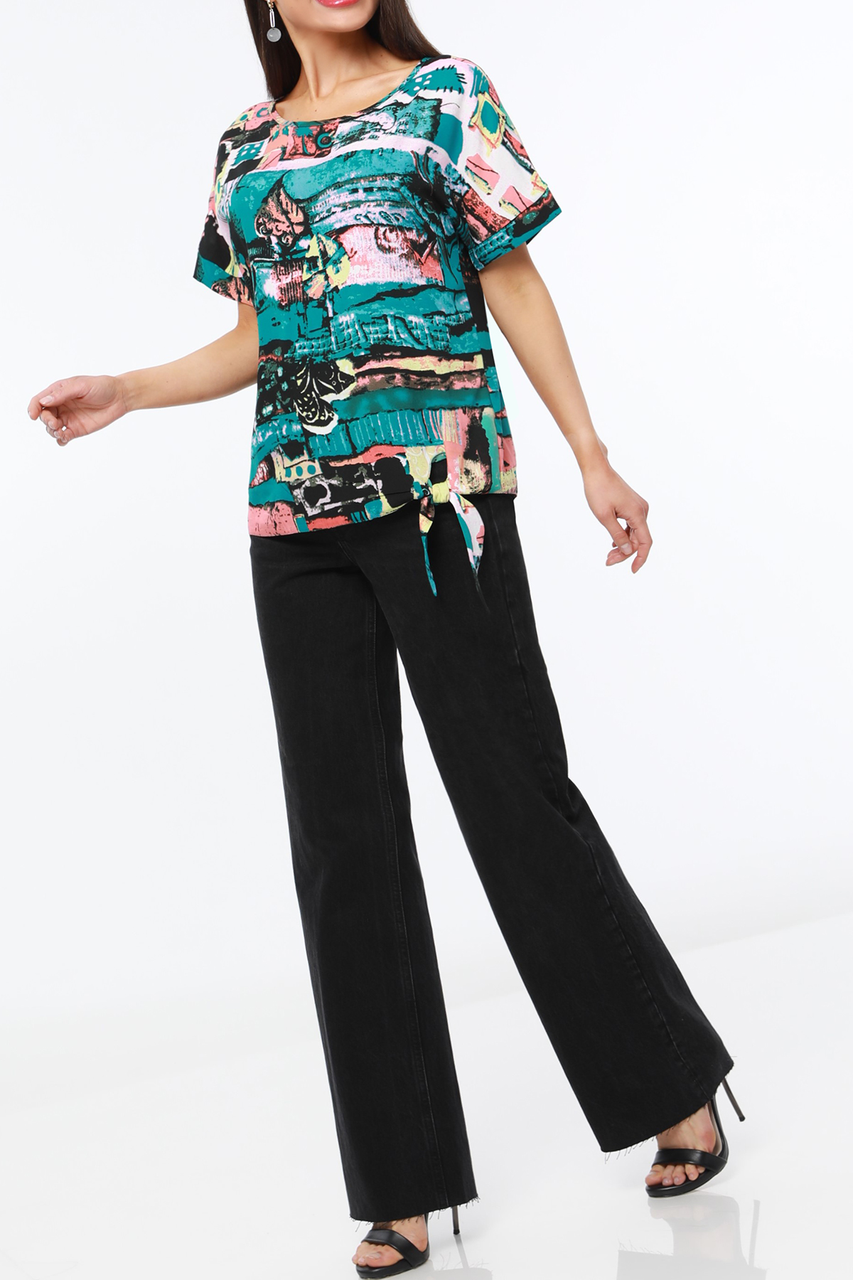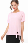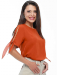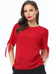 Блузка с коротким рукавом и завязками — нарядная модель, которая добавит разнообразия как в повседневный, так и в офисный гардероб. Свободный фасон с округлым вырезом прекрасно смотрится на любой фигуре, не сковывает движений и дарит чувство легкости. Изюминкой блузки становятся завязки сбоку, которые можно завязать как на узел, так и на модный в этом сезоне бант, чтобы добавить образу женственные нотки. Модель выполнена из качественной, приятной к телу вискозной ткани, которая хорошо пропускает воздух, держит форму и не скатывается. Чтобы блузка долго радовала вас красотой и качеством, рекомендуется стирать ее в бережном режиме без отжима при температуре до 30 градусов и сушить в расправленном виде.