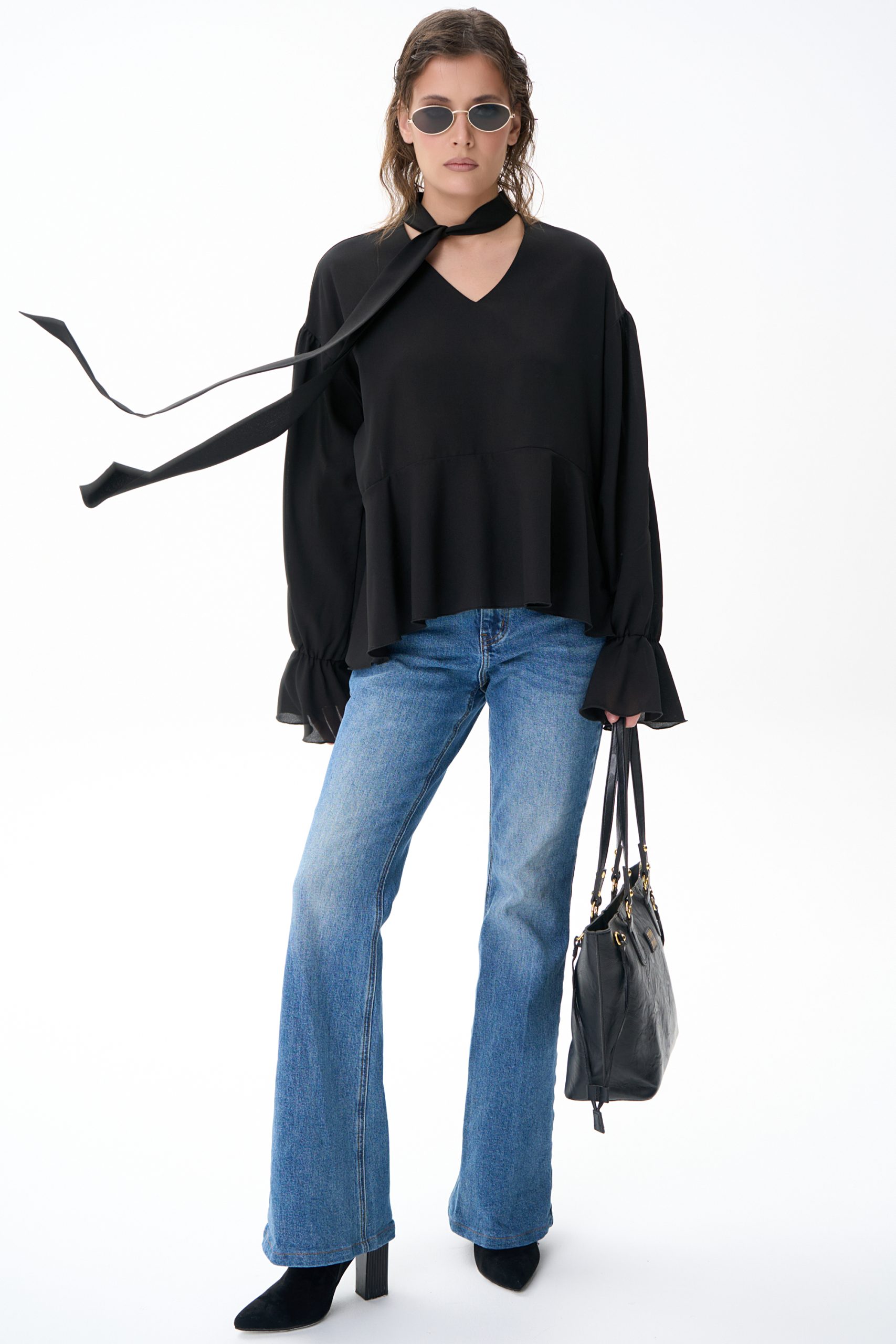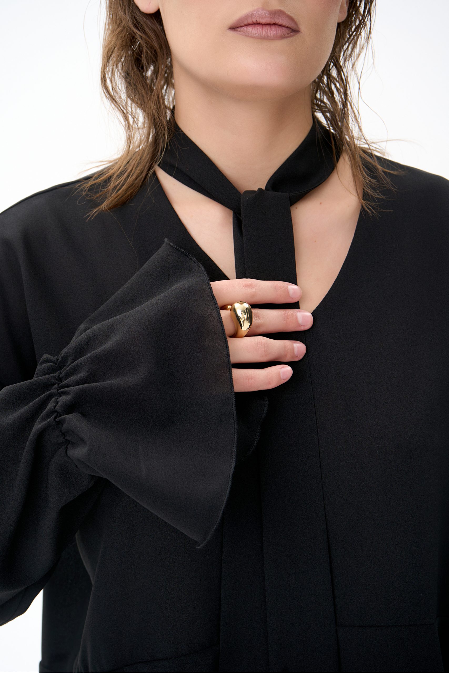 Акцентный воротник-лента — оружие, усиливающее образ. Он заменяет любые украшения и делает блузу главным элементом вашего стиля. В чёрном цвете он выглядит максимально дерзко: каждый изгиб, каждый штрих подчёркивает вашу женственность и власть.
