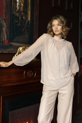 Блузка с длинным рукавом и воротником- воланом с отделкой.