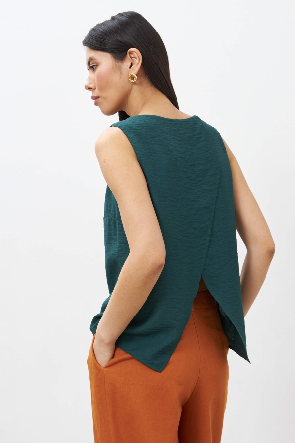 Комфортная блуза с оригинальной спинкой из фактурной вискозы. Модель свободного силуэта. Удлиненная спинка на запах.