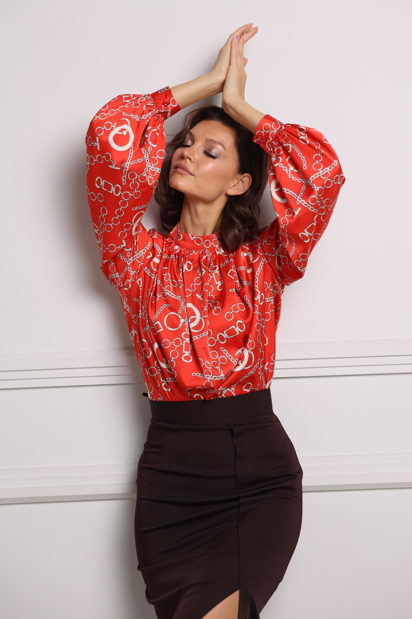 Параметры модели: 175 см, грудь 86 см, талия 66 см, бедра 96 см.