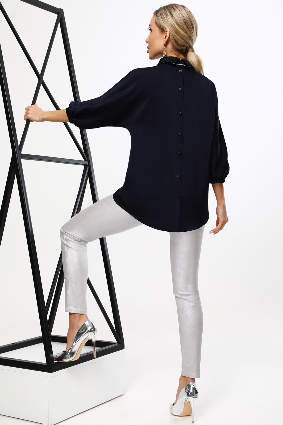 Блузка темно-синяя на пуговицах на спине