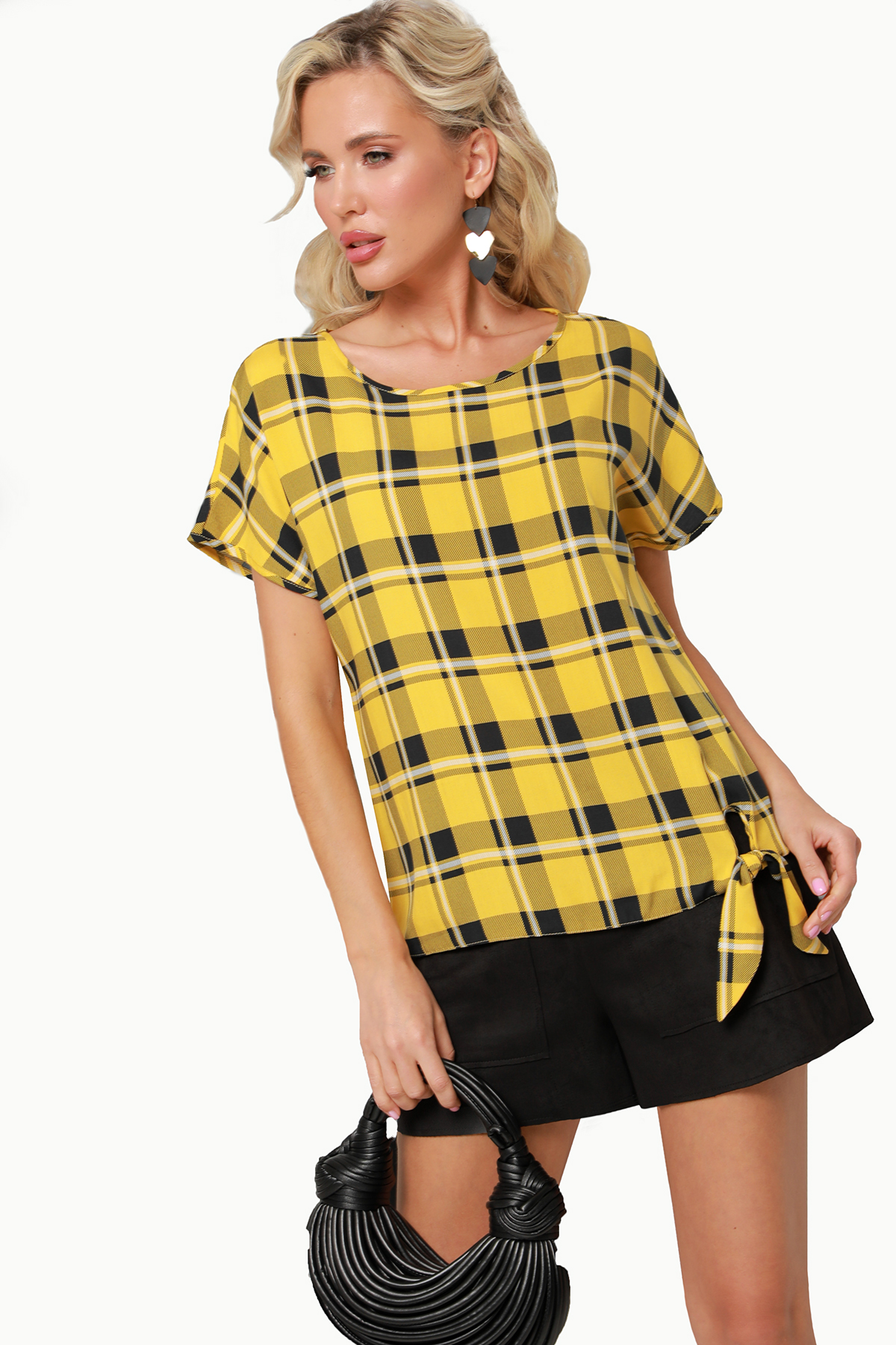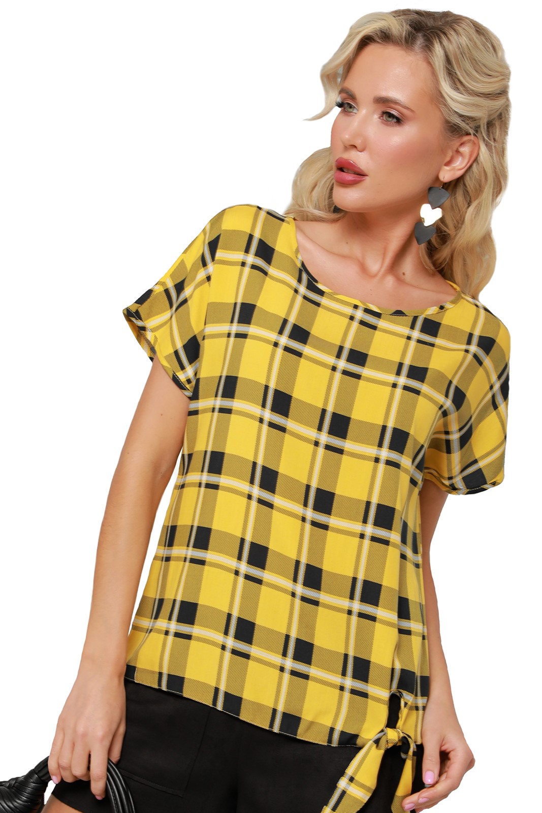 Блузка с коротким рукавом и завязками — нарядная модель, которая добавит разнообразия как в повседневный, так и в офисный гардероб. Свободный фасон с округлым вырезом прекрасно смотрится на любой фигуре, не сковывает движений и дарит чувство легкости. Изюминкой блузки становятся завязки сбоку, которые можно завязать как на узел, так и на модный в этом сезоне бант, чтобы добавить образу женственные нотки. Модель выполнена из качественной, приятной к телу вискозной ткани, которая хорошо пропускает воздух, держит форму и не скатывается. Чтобы блузка долго радовала вас красотой и качеством, рекомендуется стирать ее в бережном режиме без отжима при температуре до 30 градусов и сушить в расправленном виде.